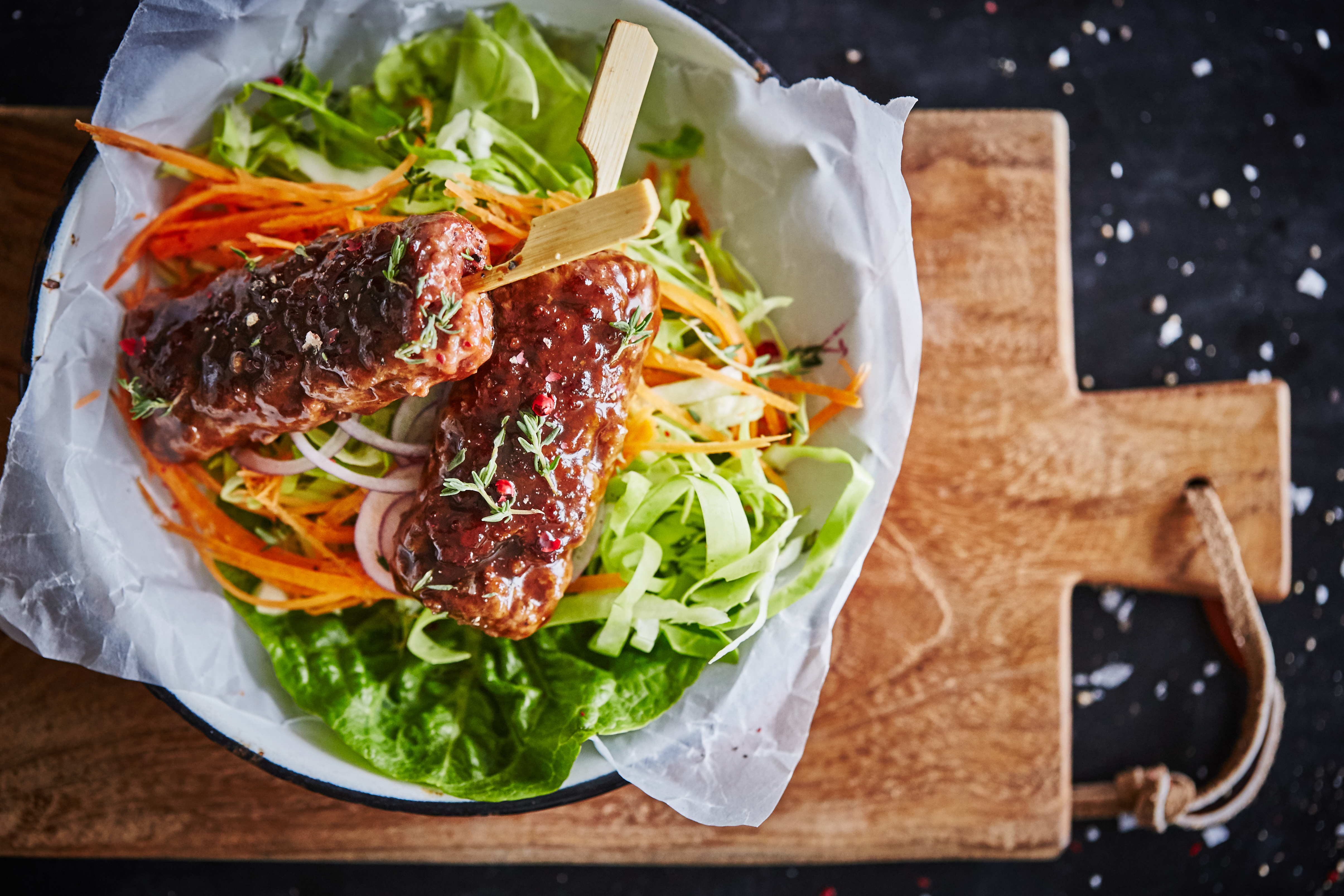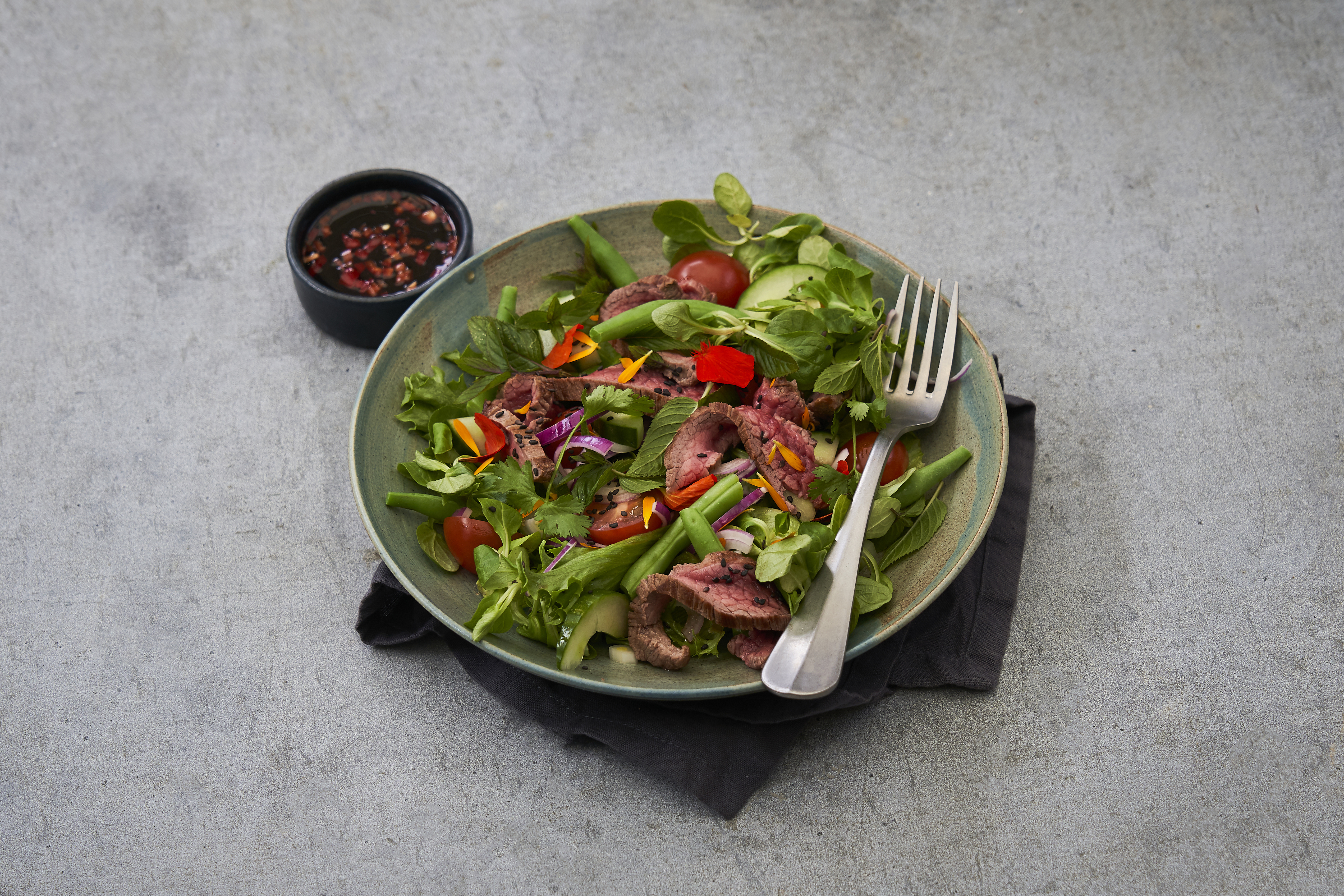 Del fortællingen om dyrevelfærdsmærket og bedre dyrevelfærd for kalve, når du serverer dansk kalv for gæsterne, så de kan nyde deres mad med god samvittighed. Forkæl dem for eksempel med en knivskarp asiatisk inspireret salat med sprødt grønt, aromatiske urter, sort sesam og cremet gomadressing – og kron hele balladen med supersaftig grillet eller rødstegt Flanchet, også kendt som flanksteak eller bavette, af dansk kalv.