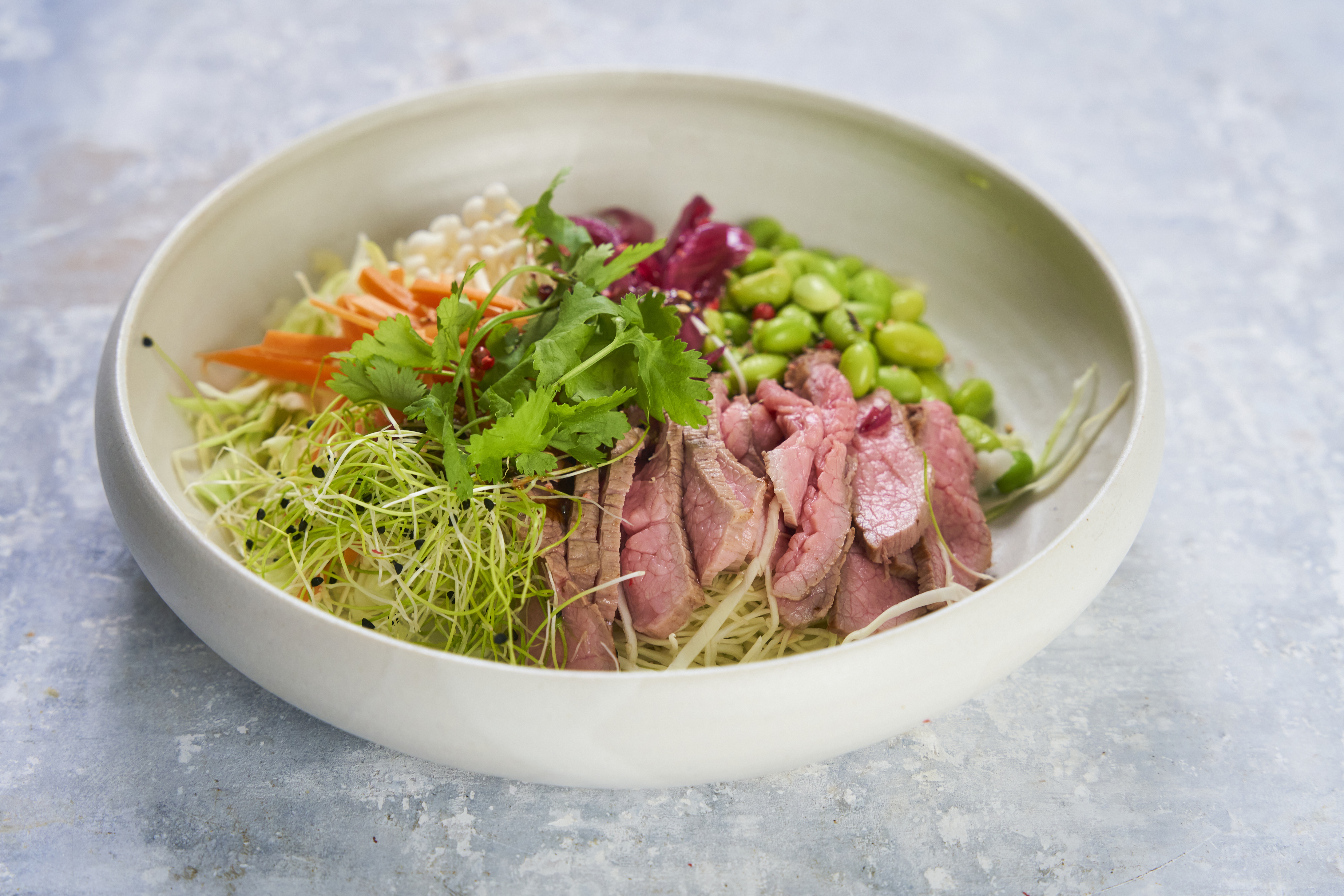 Med sin raffinerede milde smag og helt unikke mørhed er kalvekød en perfekt makker med det grønne køkken, hvor kødet tilføjer umami og struktur, for eksempel til en grøn bowl med et væld af sprøde grøntsager. Top bowlen med tynde skiver af rosastegt kalveinderlår og suppler med en dressing med masser af friske urter.