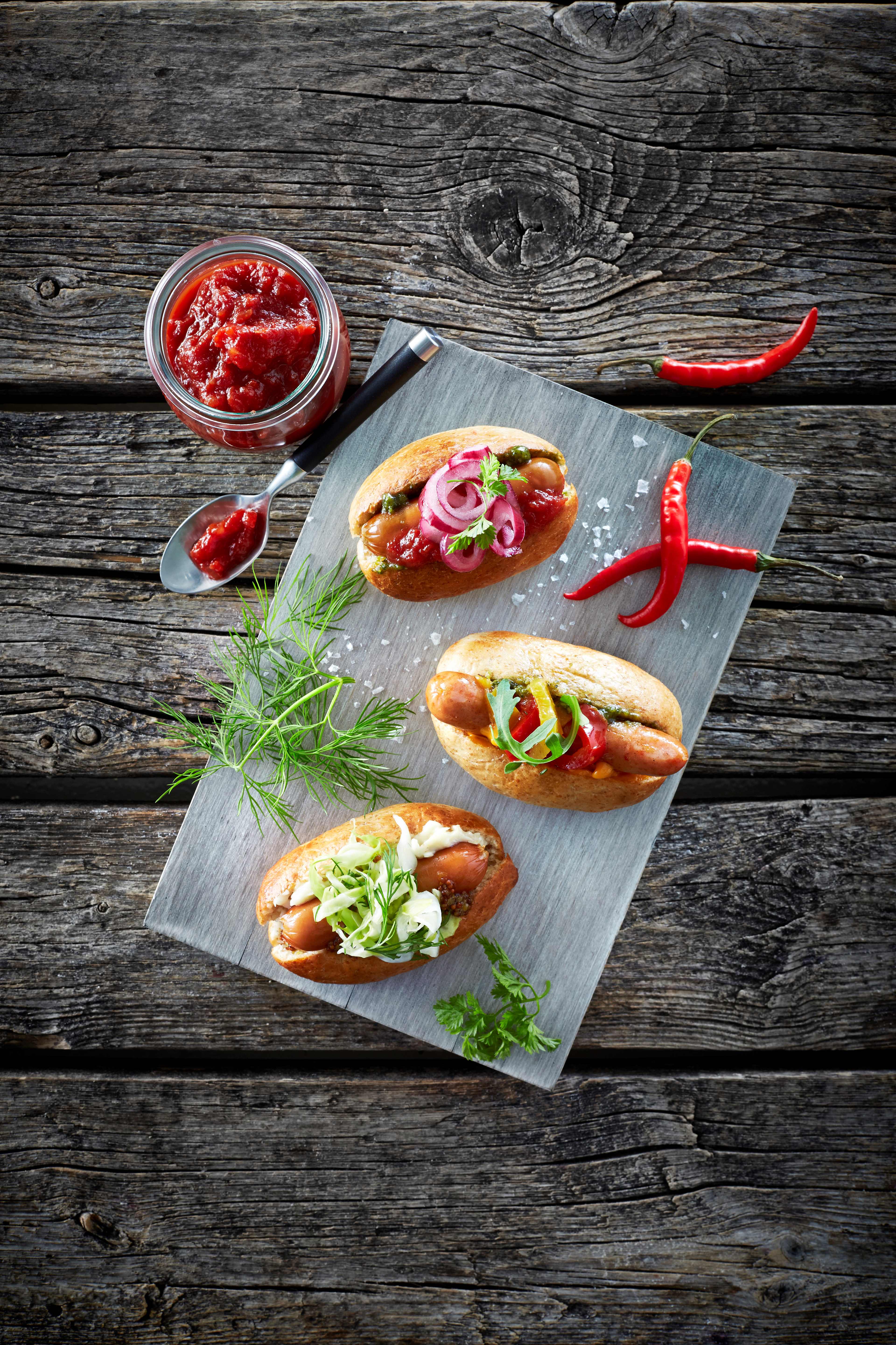 Prøv en af disse tre superdelikate minihotdogs med brunchpølser i hjemmebagte brød. Top med spicy salsa, peberrodskål eller aioli og grillet peber. Og hvis sulten er til mere end én hotdog? Jamen, så snup da bare to!