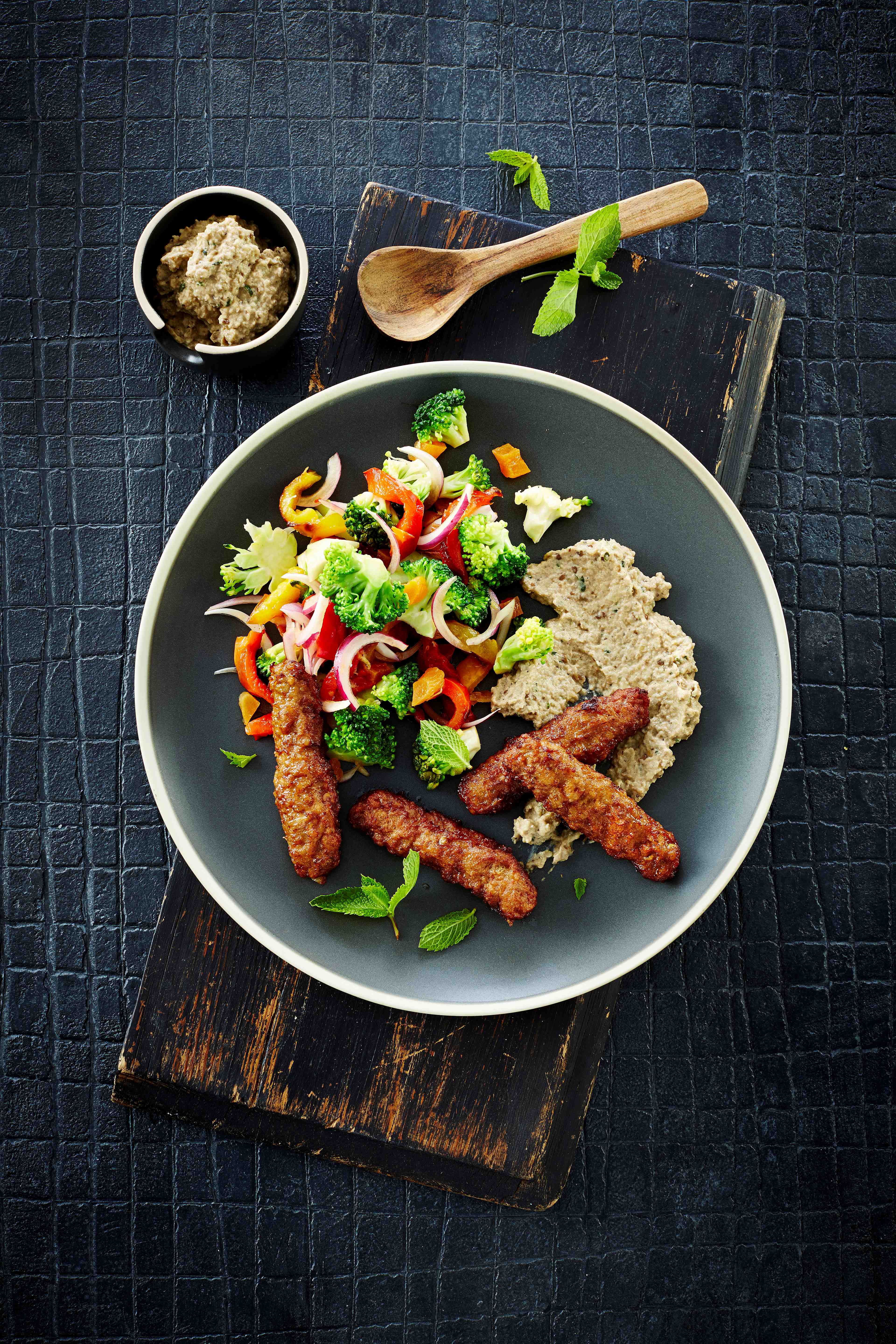 Med vores saftige Cevapcici Farspinde, lavet på gris og krydret med hvidløg, er vi hoppet en tur ind i Balkankøkkenet. Her serverer vi de fristende, velstegte ’Balkandeller’ med en dybt velsmagende auberginedip og en knasende kålsalat, vendt i honning og citron. I denne opskrift er der beregnet fire Cevapcici per person, men du kan også lave portionsanretninger med en enkelt pind per servering.
