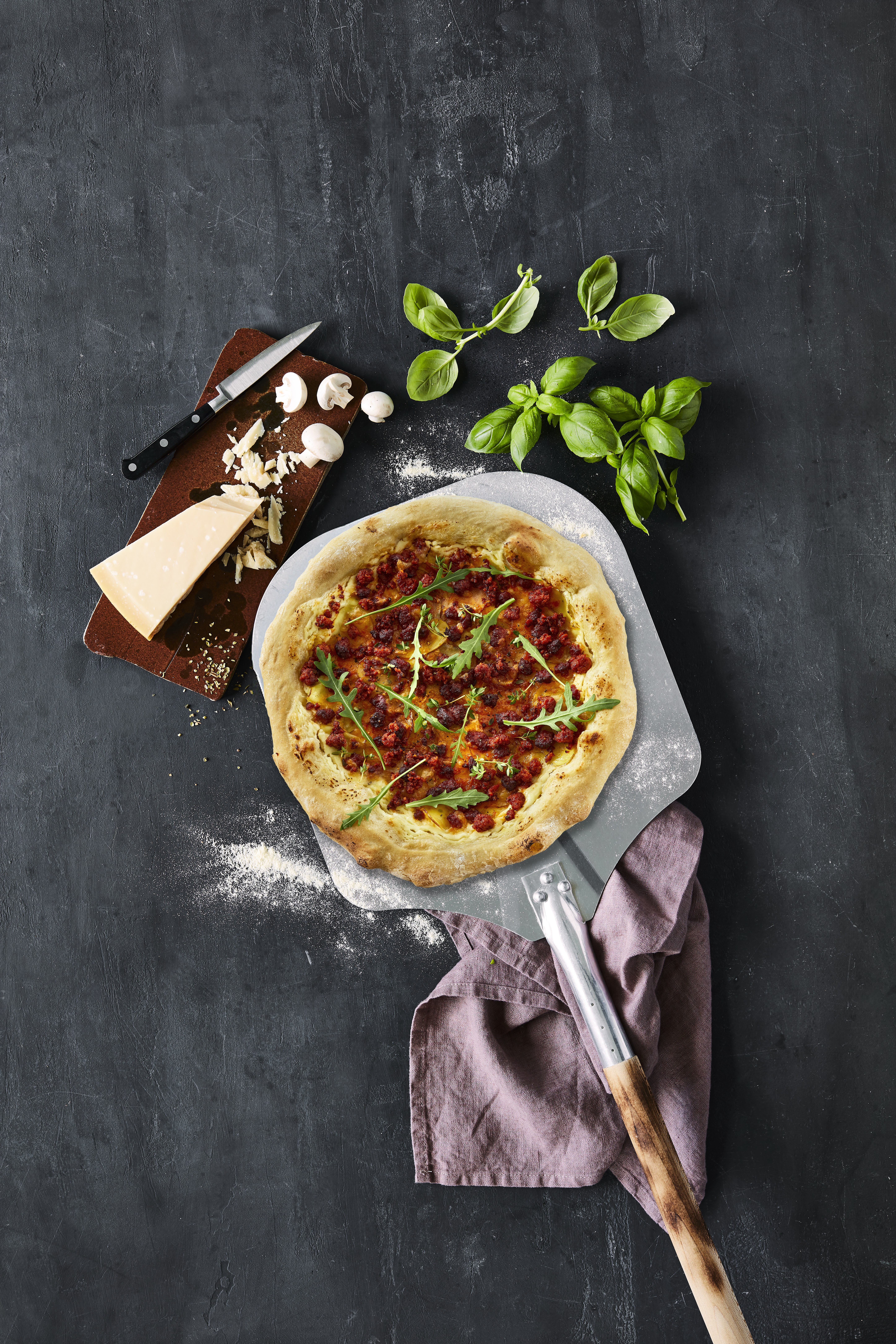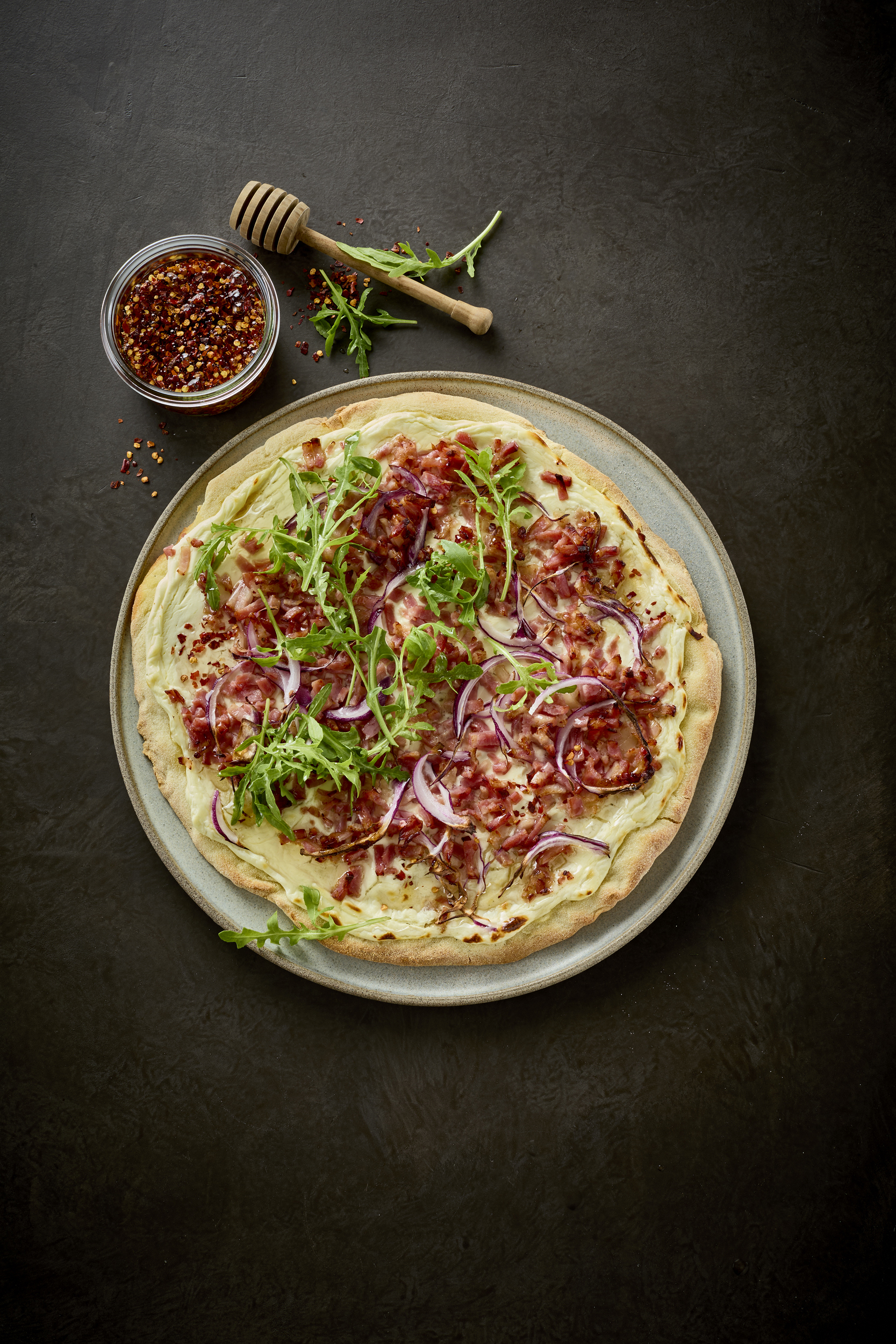 Nu går vi ind i det røgede univers og laver comfort food fra den øverste hylde! Rigtig vinterpizza, hvor solide klassikere som Smoky Bacon Topping eller den spansk-inspirerede Diced Chorizo med den særlige krydring sætter smag på pizzaen. Prøv en pesto som base for pizzaen, lavet på rucola, persille eller basilikum – eller en blanding.