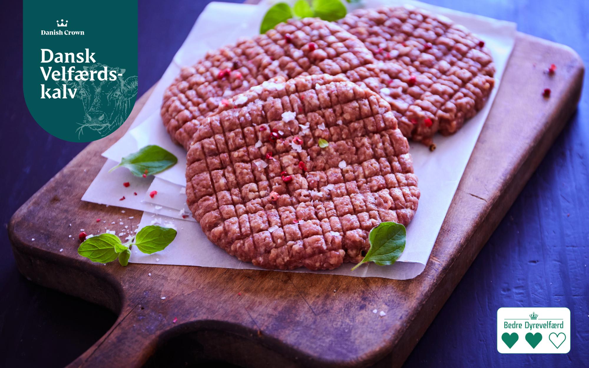 Kalveburgeren kommer med to af de eftertragtede tre hjerter for god dyrevelfærd, som stiller krav til kalvens opvækst. Kalvekødet er hakket, krydret med salt og peber, og indeholder 18 % fedt, så det fine kød forbliver supersaftigt efter stegning. Kalvekød er lidt af en luksusspise, så vi giver den gas med luksustilbehør!