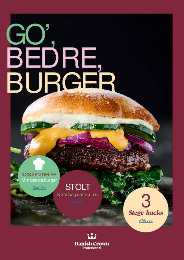 - · Husk noget sur-sødt og sprødt sylt i burgeren som modvægt, for eksempel chilisyltede græskar eller dild-pickles.