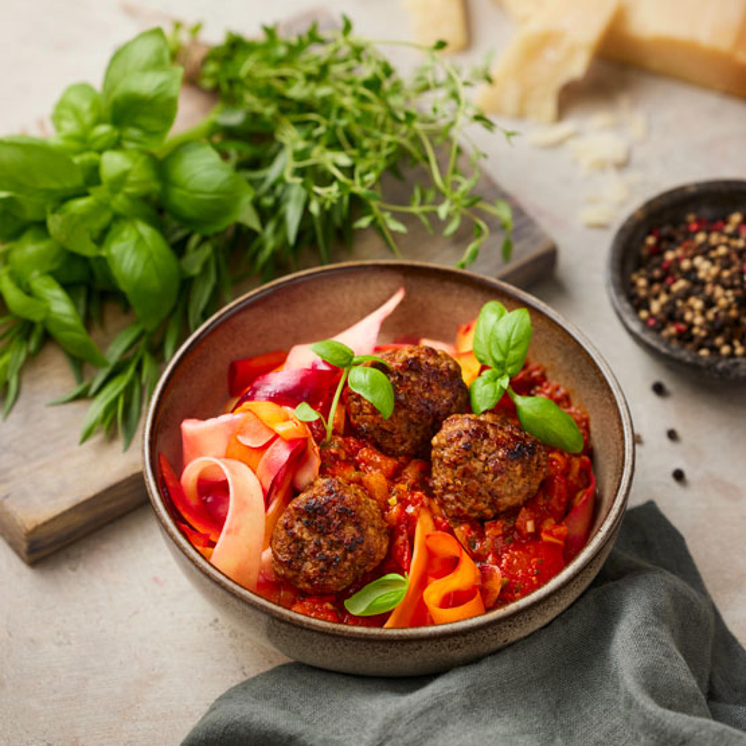 For at opnå den helt rigtige konsistens og smag har Danish Crown Beef arbejdet sammen med en række specialister. Der er testet et utal af kombinationer af kød og en lang række forskellige grøntsager og bælgfrugter.