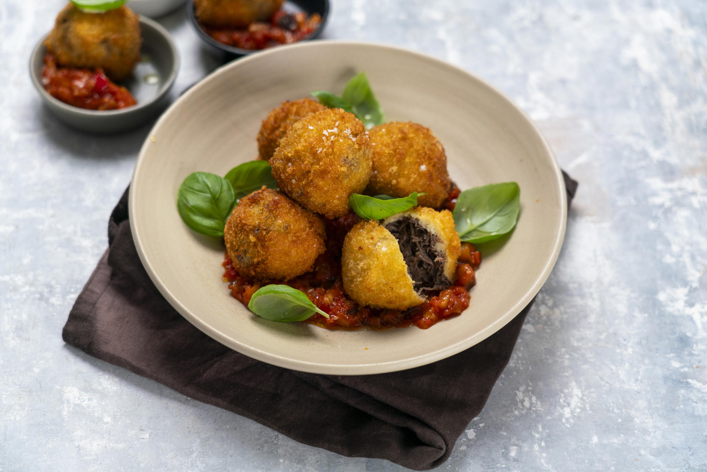 Selv i helt små portioner giver det gode kalvekød smag til en ret eller snack. Brug en rest braiseret kalv eller tilbered en portion kalvekæber ved at braisere dem med lidt rodfugter, krydderurter og vin, most eller øl, til kæberne er smørmøre. Pluk det møre kalvekød, bland med lidt af den reducerede sky, og lad massen køle helt ned inden den formes til valnøddestore kugler. Panér i mel, æg og pankorasp, og steg gyldne i frituren. Server varme med en velkrydret aioli, chutney eller en rest finthakket ratatouille.