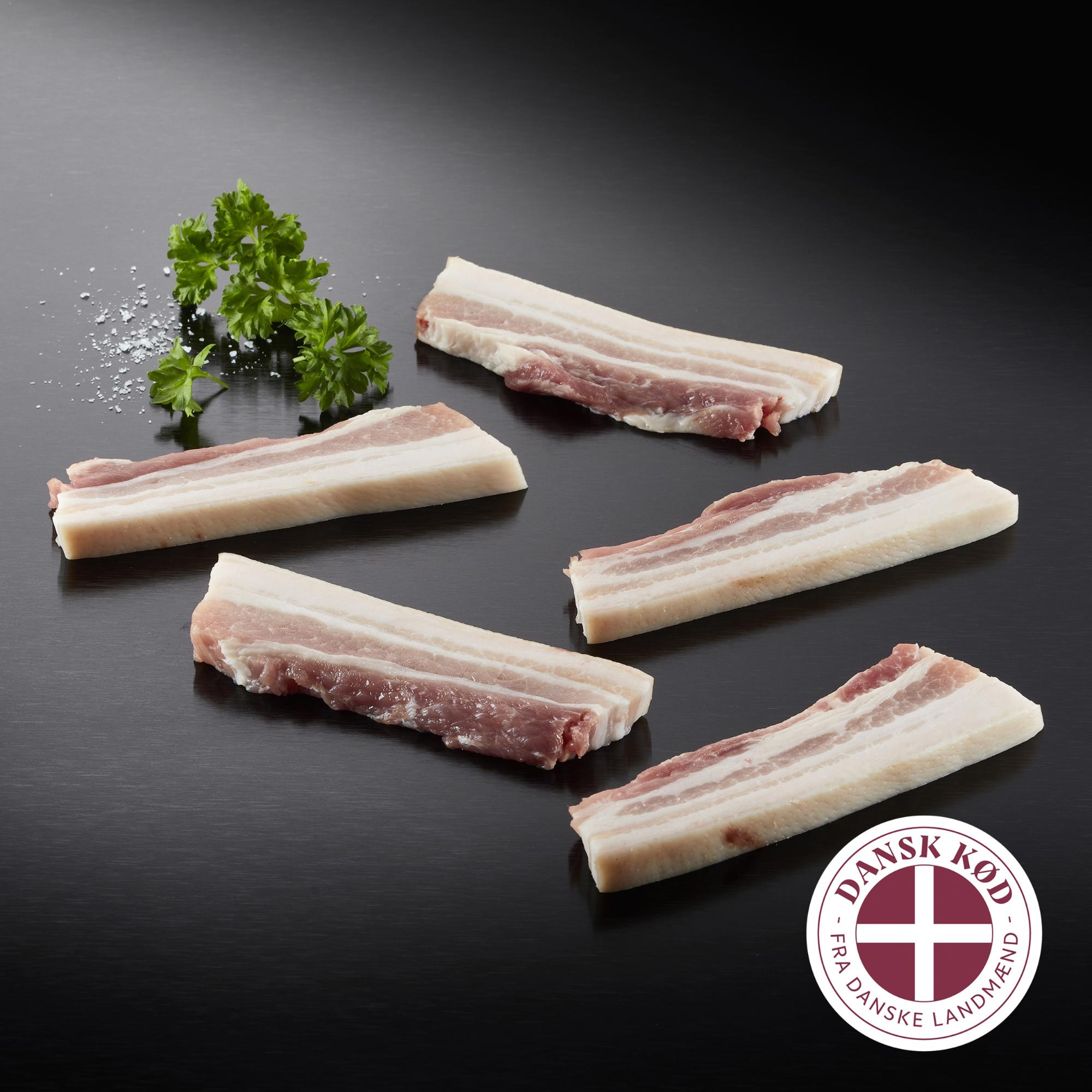 Flæsket steges allerlettest på en rist i ovnen ved 225 grader til det er sprødt. Udover salt kan det krydres med for eksempel timian eller rosmarin. Flæsket kan både saltes før og efter stegning. Der er masser af mulighed for at servere den sprøde umamibombe med andet tilbehør. Her får du lidt fif – til før, på og efter Valdemarsdag!