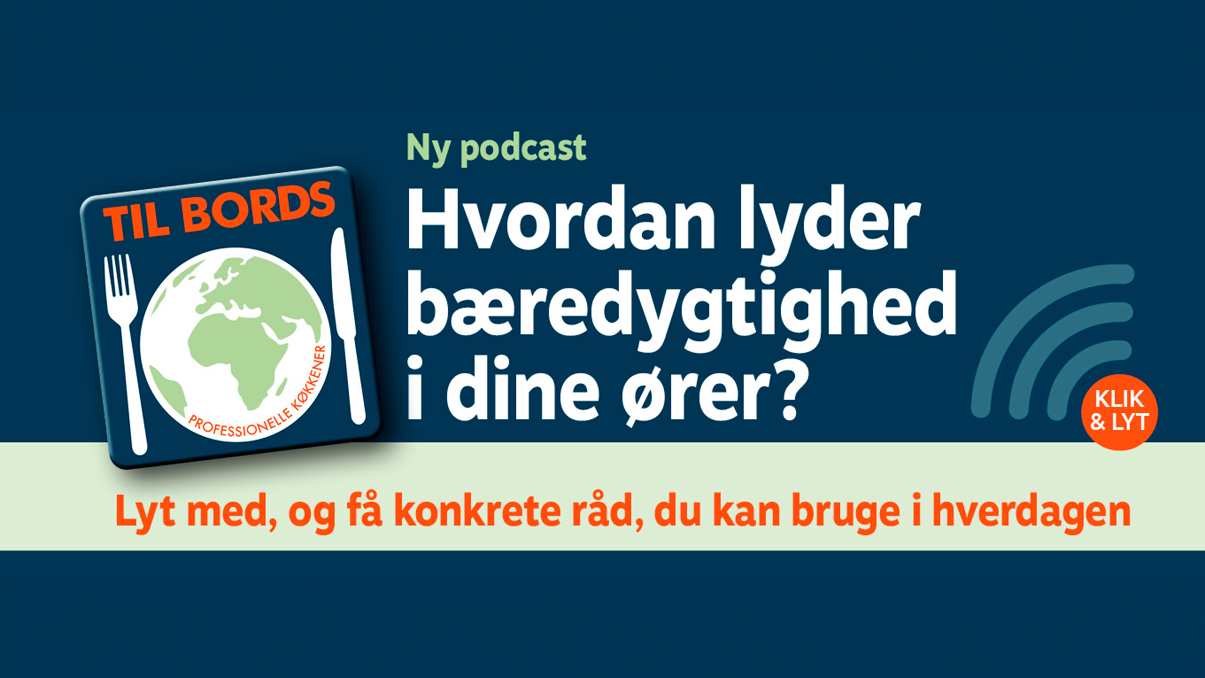 Det vil vi, i samarbejde med Catering Forum, hjælpe de professionelle køkkener med, og i første omgang er det blevet til Podcasten ”Til Bords”, hvor nogle af landets førende kokke, bæredygtighedsansvarlige og specialister giver gode råd, så der kan tages fat på nogle af de helt centrale udfordringer, som analysen peger på. Helt konkret dykkes der ned i, hvordan foodservicebranchen kan arbejde med forskellige bæredygtighedsinitiativer, såsom eksempelvis mindre madspil, mindre rødt kød, lavere CO2 udledning samt nedsættelse af emballageforbruget.