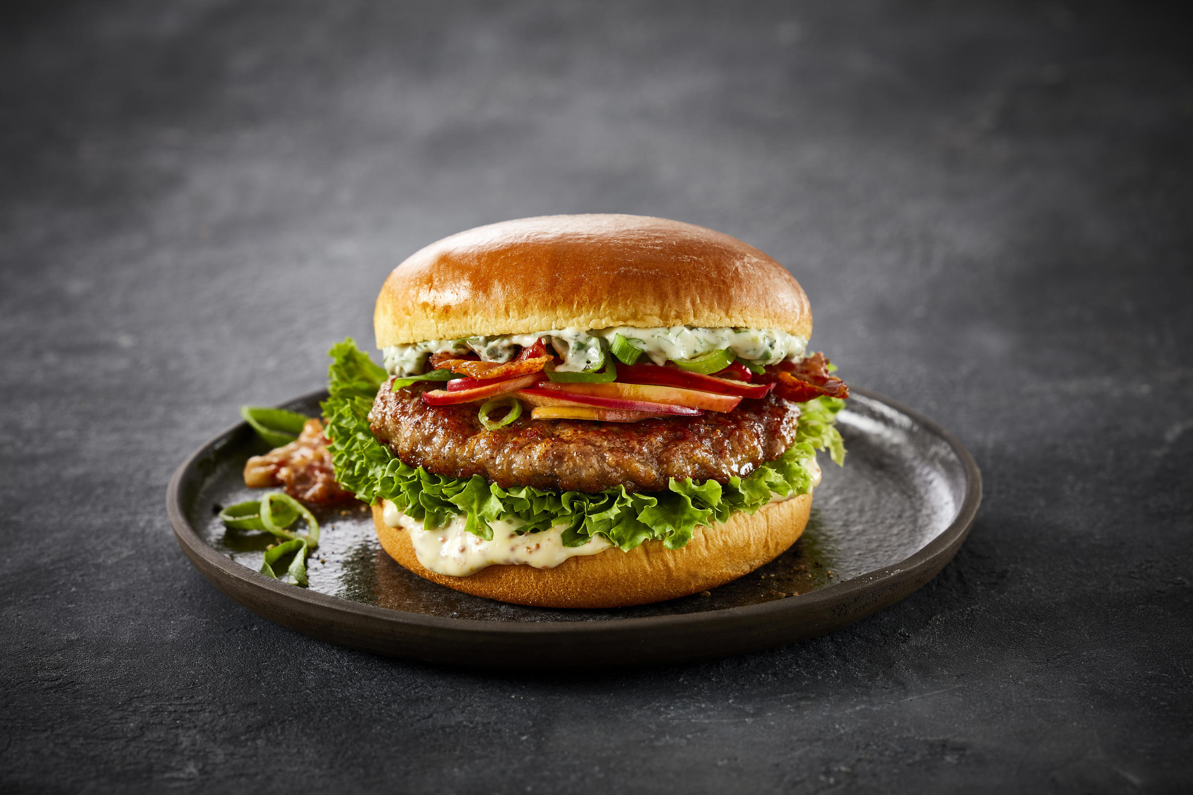 Burger på dansk gris er et super smagfuldt bud på en ny type burger. Kødet er hakket og krydret med havsalt og røg- og løgsmag for et lille twist. Gris har en naturlig sødme, så det er oplagt at fylde æble i burgeren, for eksempel som i denne Pork Burger med æble, bacon og forårsløg. Men sødmen peger også i retning af Asien.