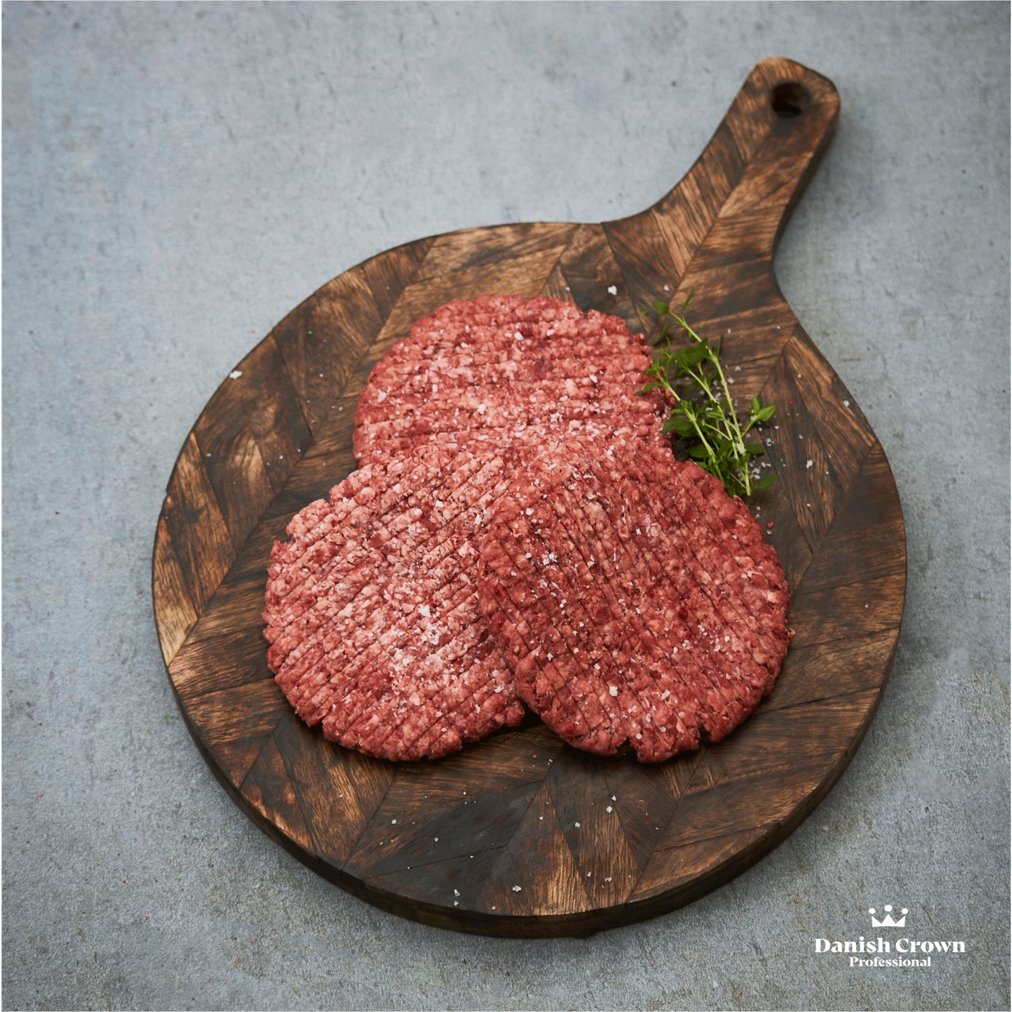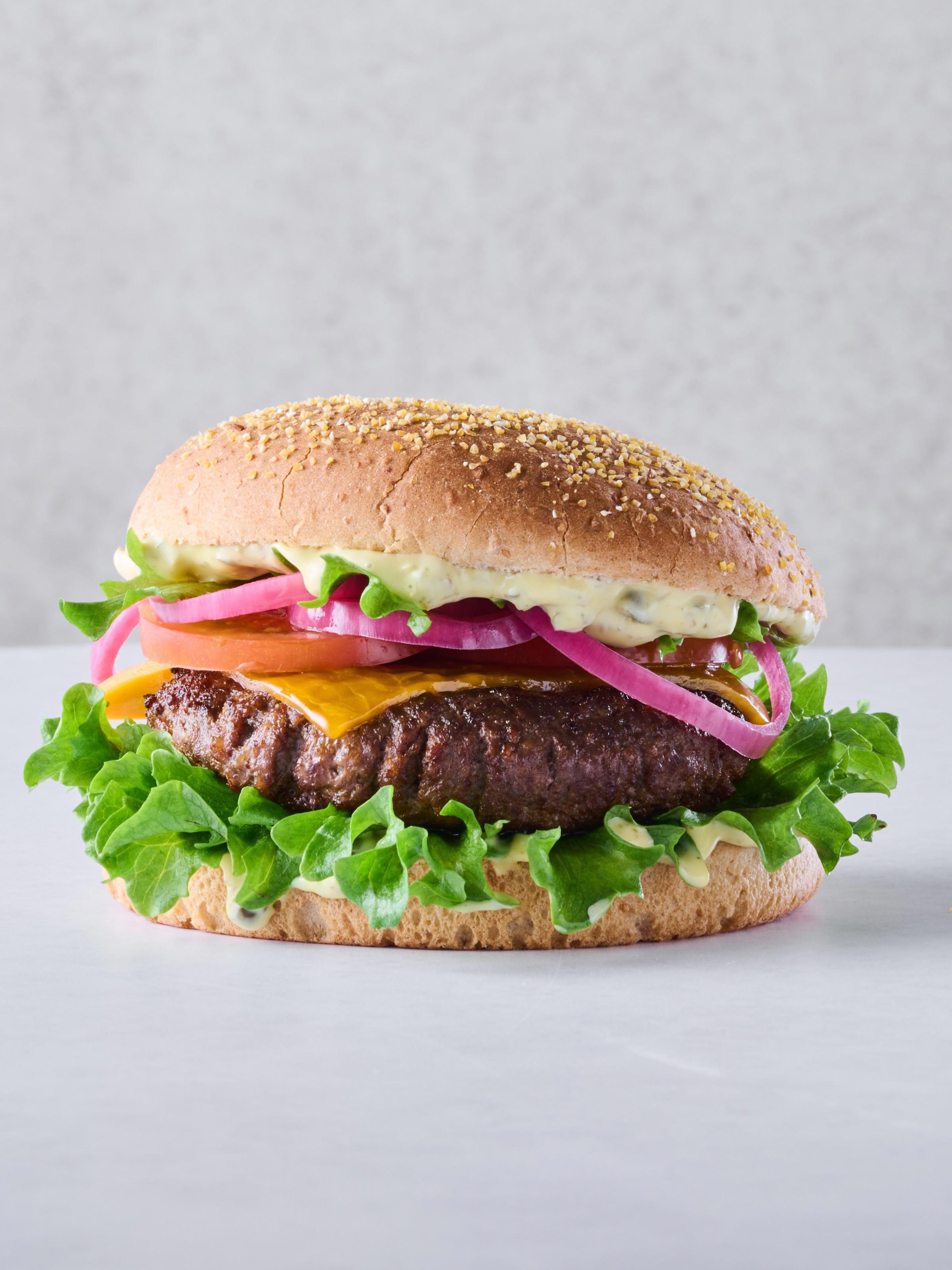 En rigtig håndværksburger, hvor oksekød fra danske dyr håndsorteres af erfarne slagtere, så der kun anvendes oksekød med den bedste fedtmarmorering og struktur. Oksekødet krogmodnes i rum med omhyggelig fintunet luftfugtighed, temperatur og luftcirkulation for optimal smag. Resultatet et en supermør bøf, der har en intens umamismag.