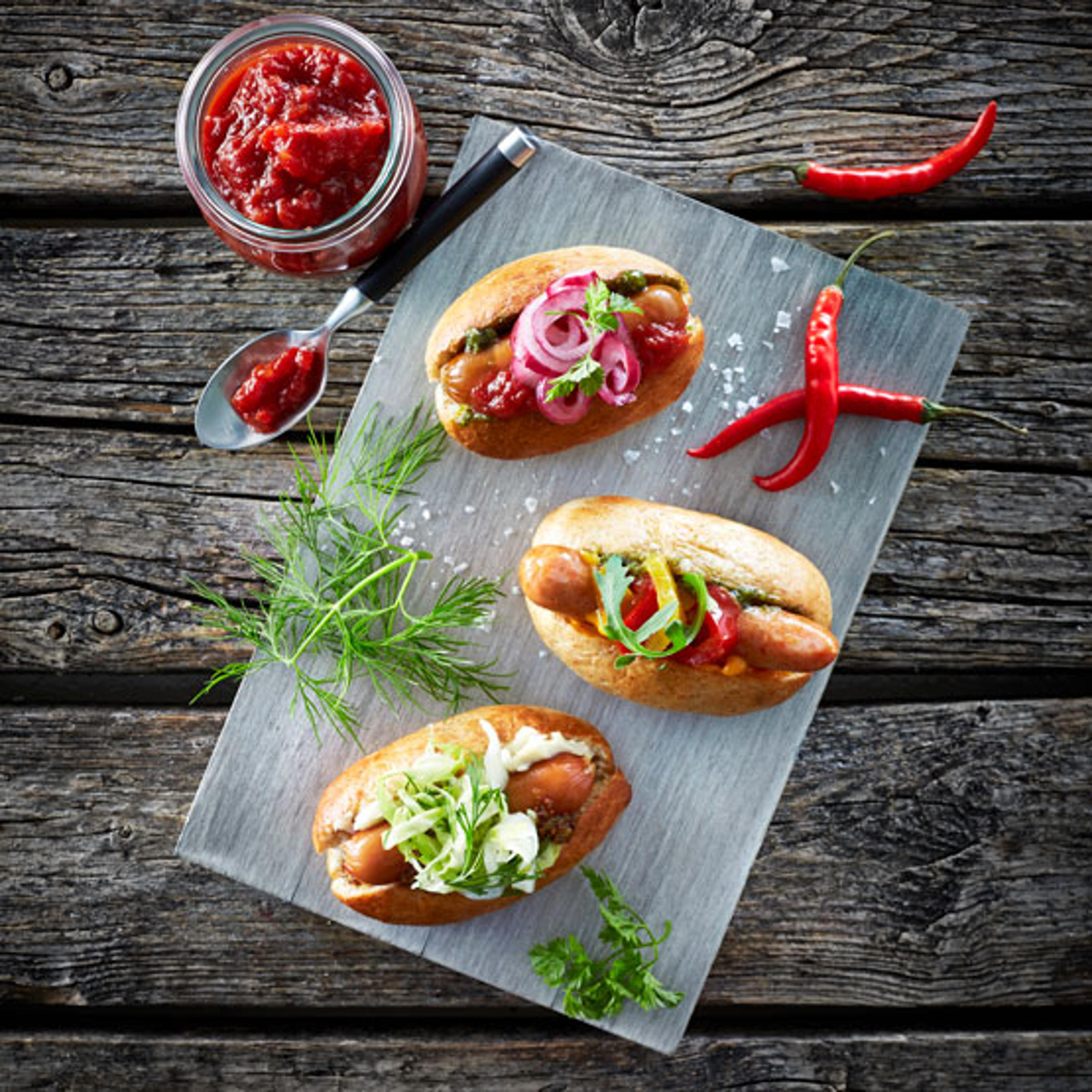 Husk i øvrigt, at d. 17. juli er International Hotdog Dag! En mærkedag, hvor man siden 1971 har hyldet hotdog’en i USA. Mon ikke dine gæster er med på at fejre denne velsmagende dag? Find inspiration til lækre hotdogs nedenfor.