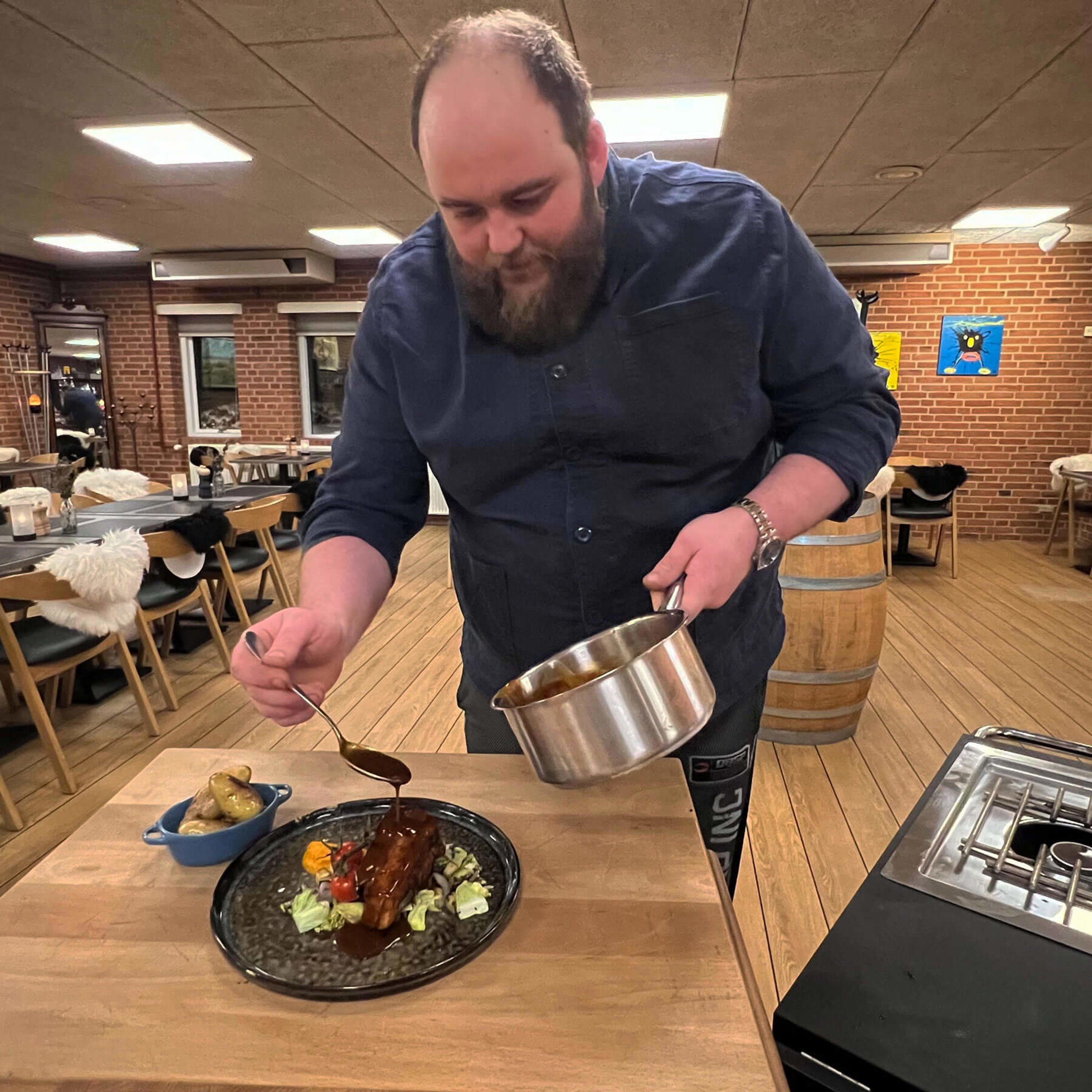 Siden da har han sammen med sin hustru udviklet kroen efter sine egne ønsker. Og han når vidt omkring i gastronomien - gerne med Tender Pork som medspiller.