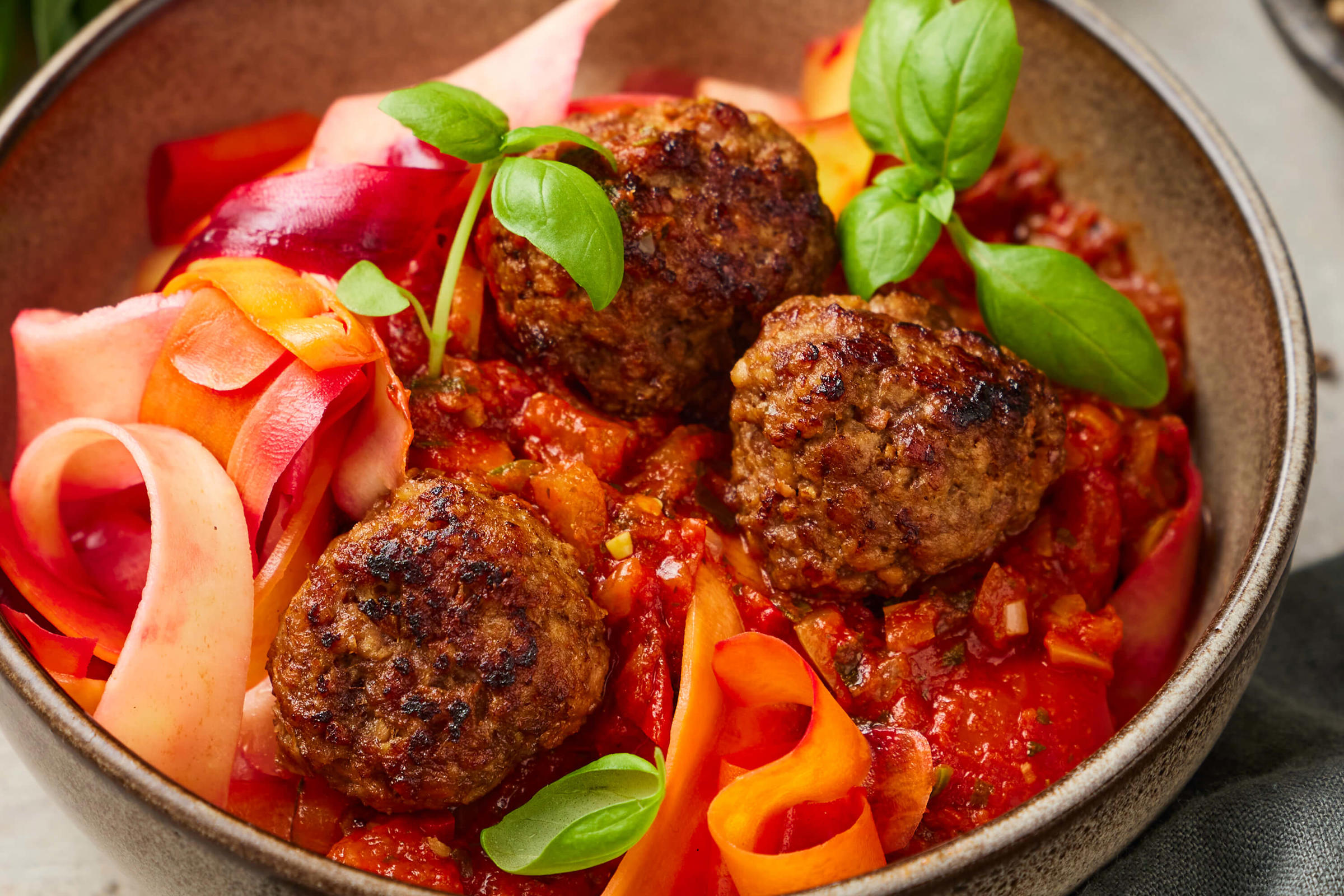 Efterspørgslen på retter med mindre kød er hverdagskost i kantiner, caféer og storkøkkener. Der er brug for madmod og nytænkning, når vi skal mætte maver på måder, der smager af mere uden at kræve mere af de travle kokke. Vi har fundet opskriften!