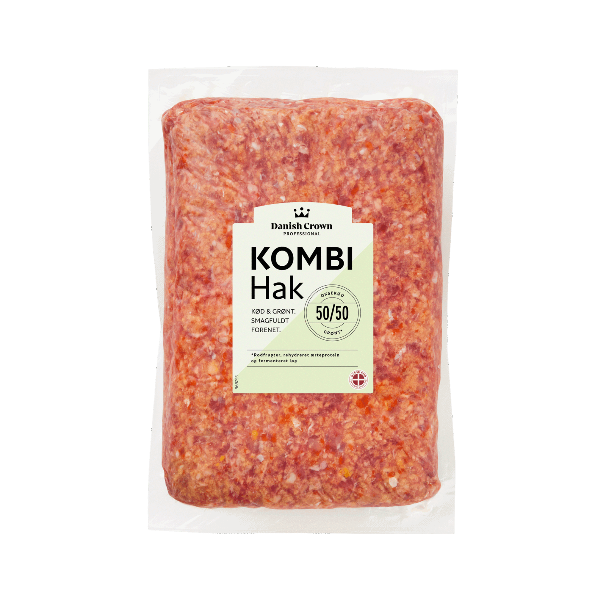 KOMBI Hak er hakket oksekød med grønt og 50% mindre kød. Det er velkendt umami og konsistensen fra oksekød smagfuldt forenet med rodfrugt, ærteprotein og fermenteret løg. Det er alternativet til alle de klassiske hakkekødsretter helt uden krumspring i køkkenet. Det er fremtiden, og det smager af mere.