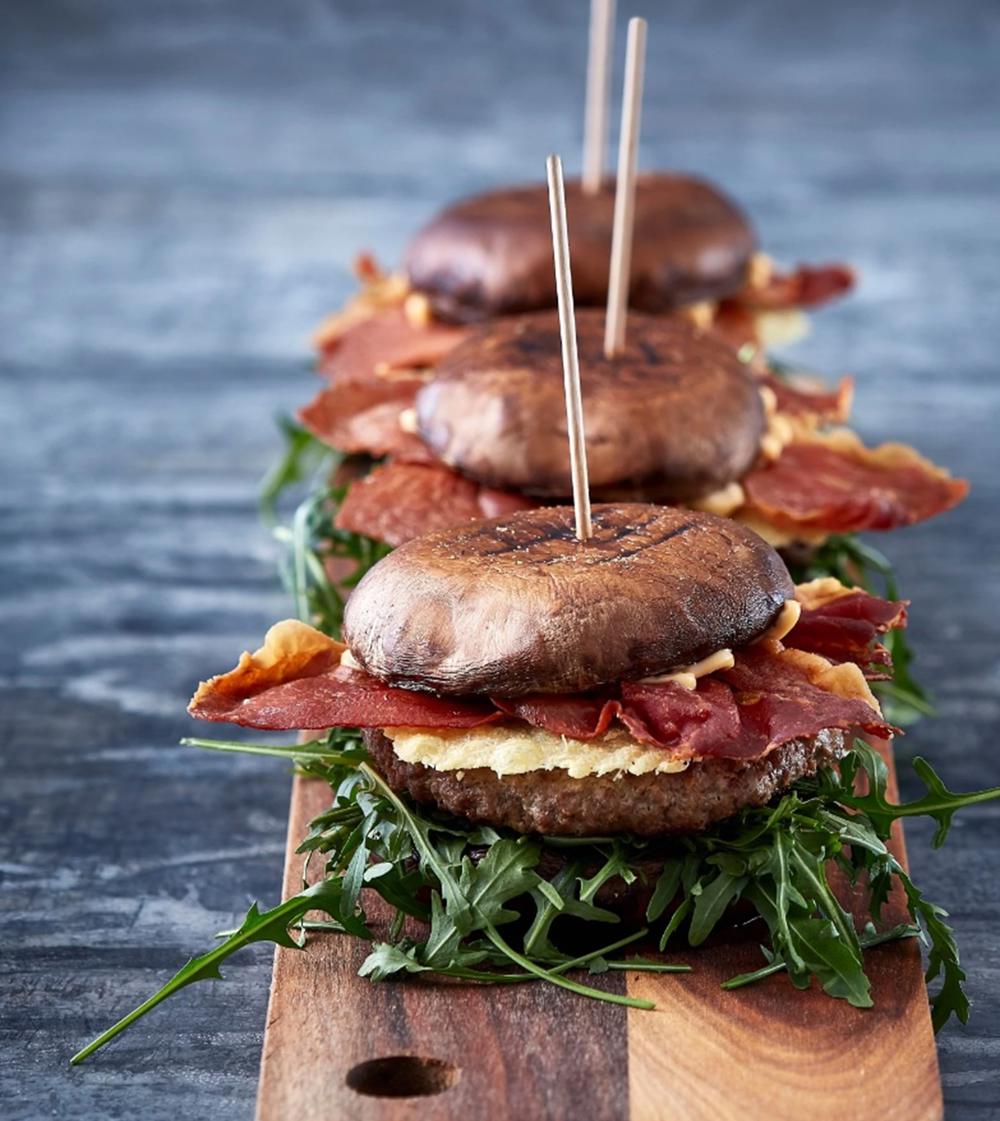 Burger med skalotteløg, stikkelsbær og purløgsmayo