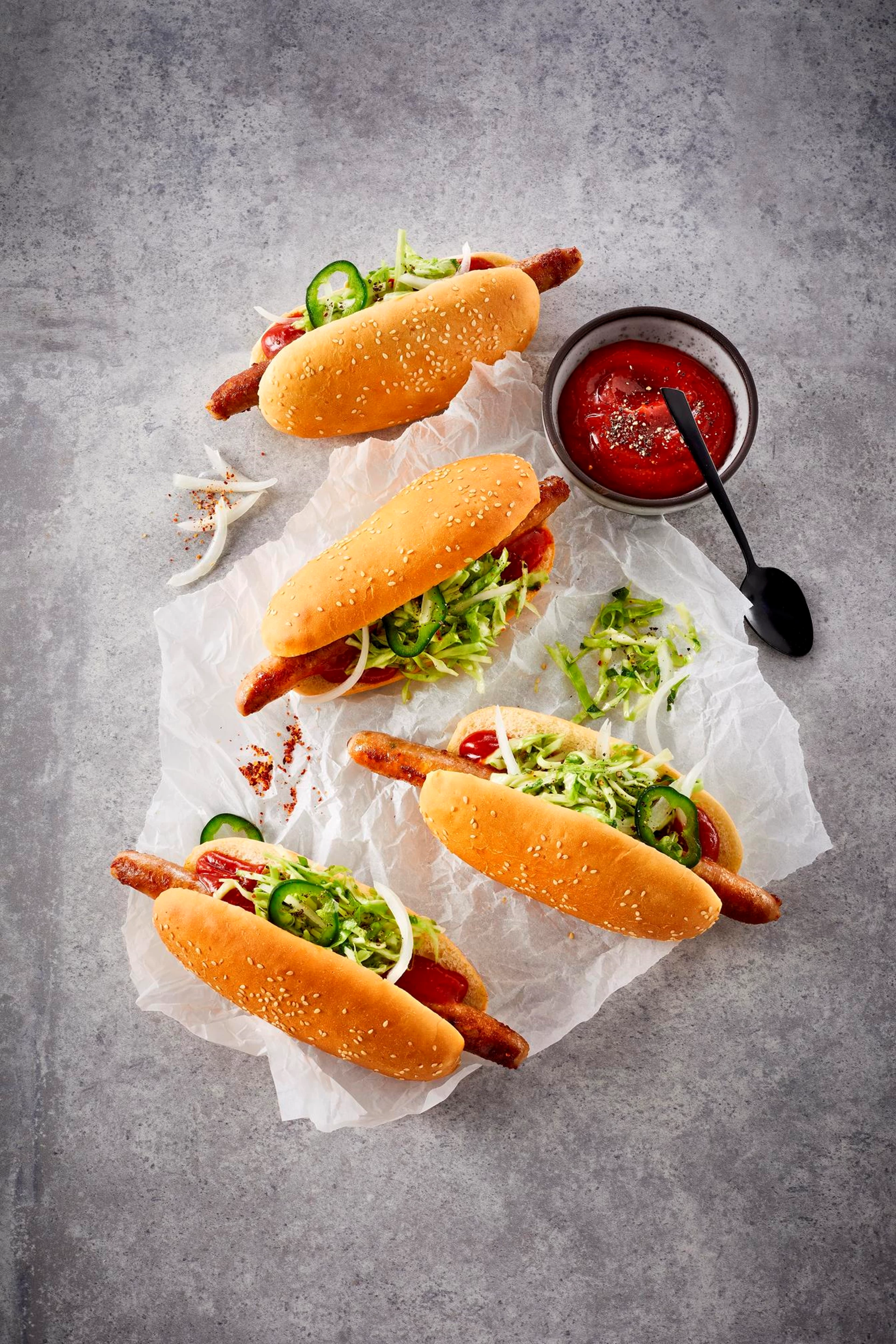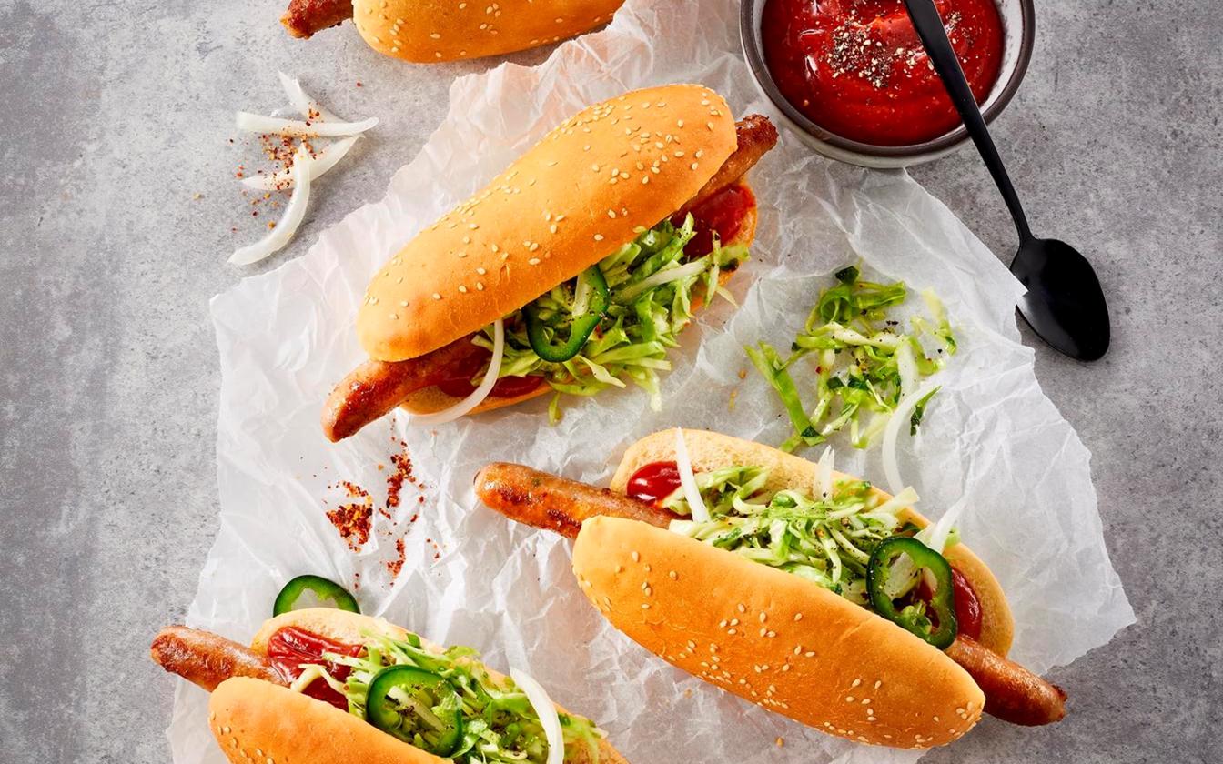 Hotdogs med jalapeños, spidskålssalat og koriander