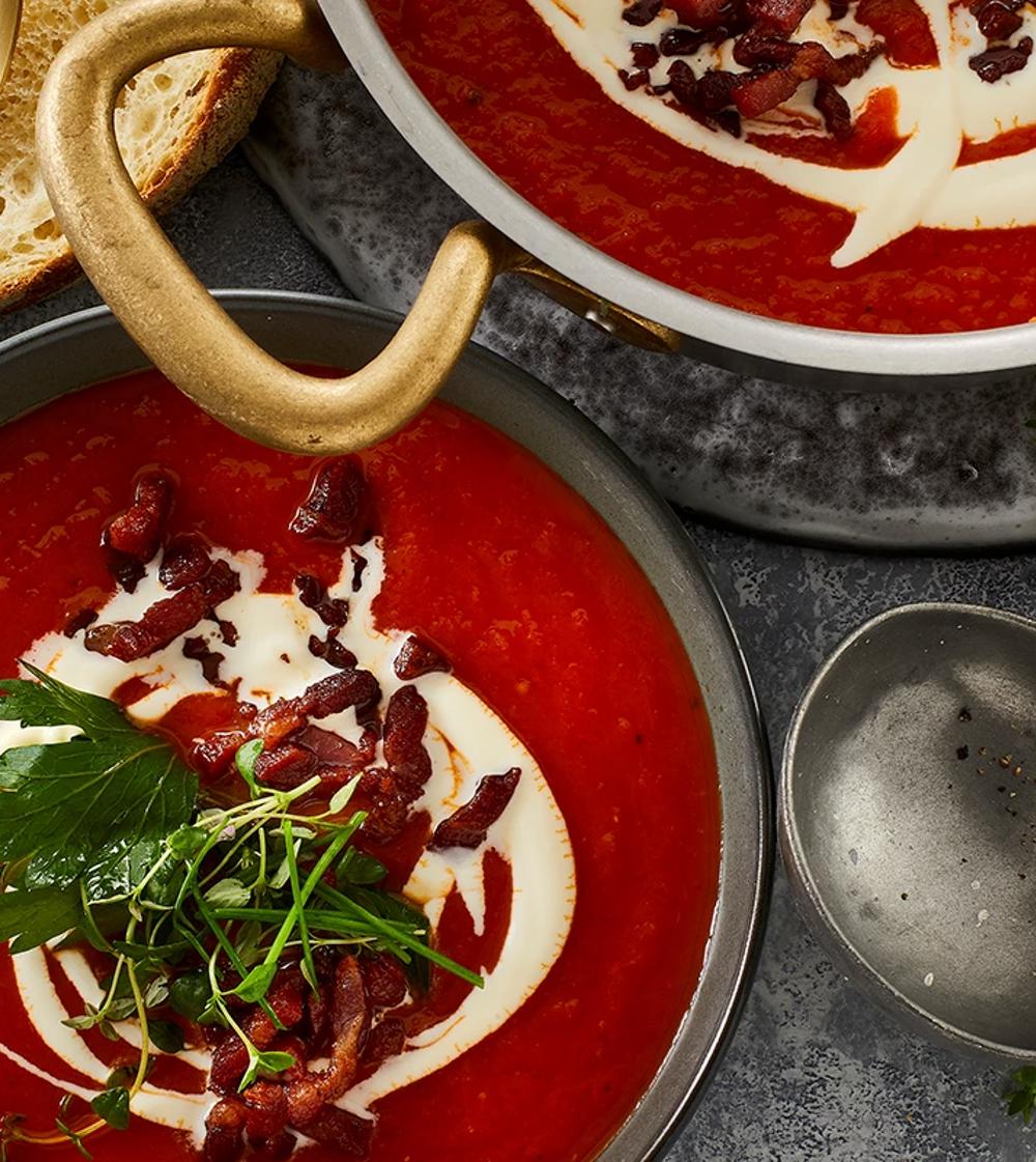 Karry-kokossuppe med bacontern, blomkål og ingefær