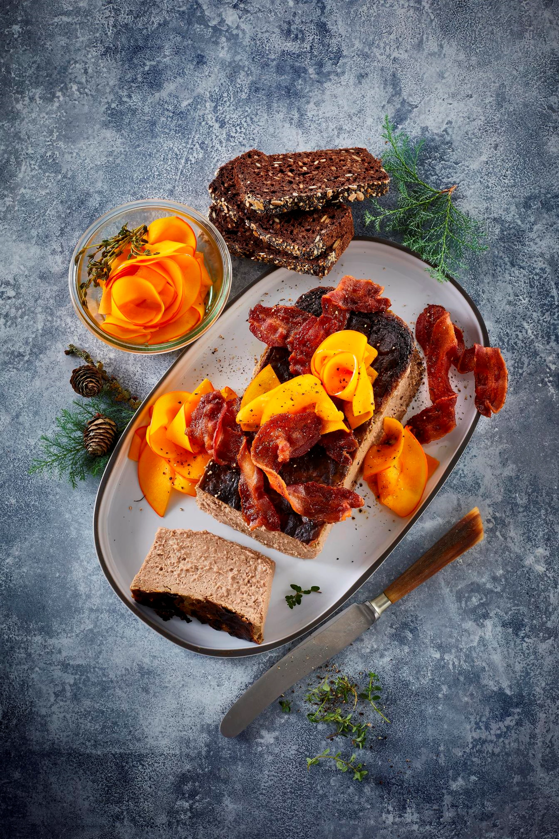 Lun leverpostej med sprød bacon og syltet græskar