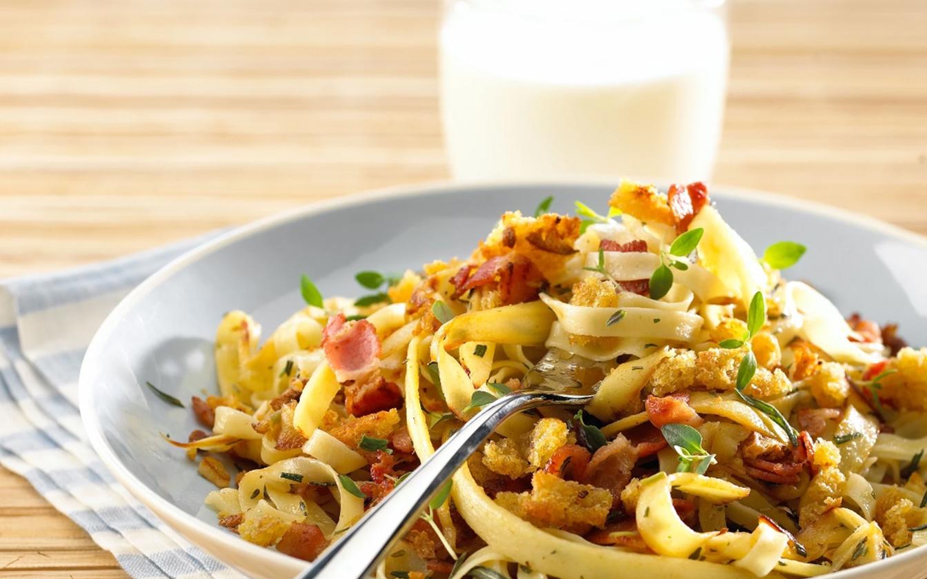 Pasta med pastinak, bacon og sprød brødkrumme