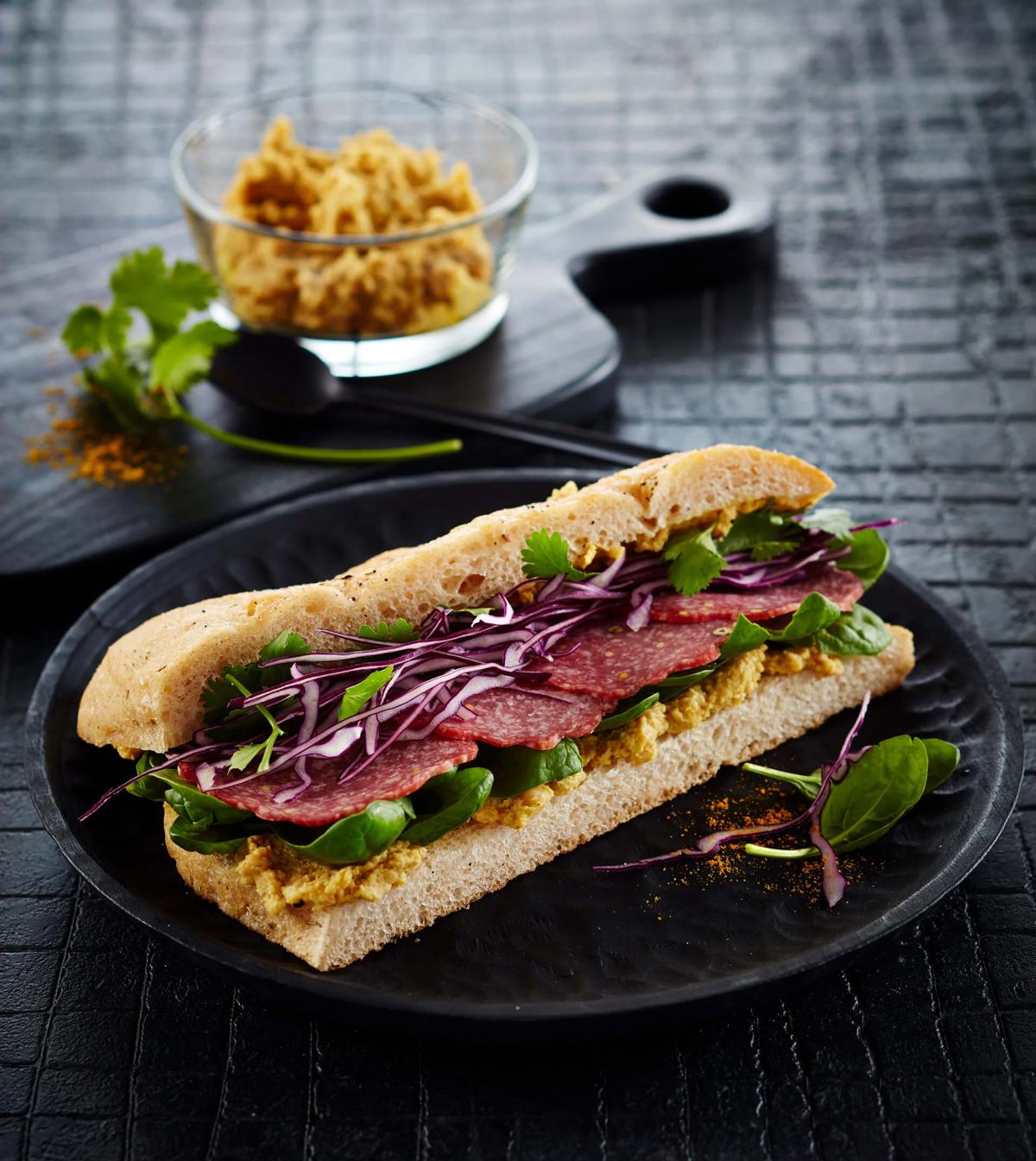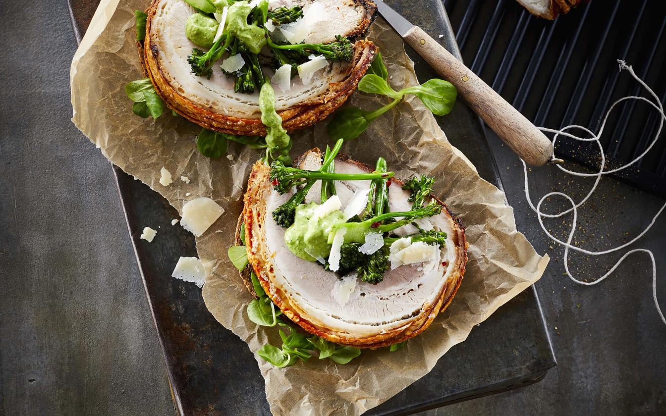 Sandwich med porchetta, broccoli og persillemayo