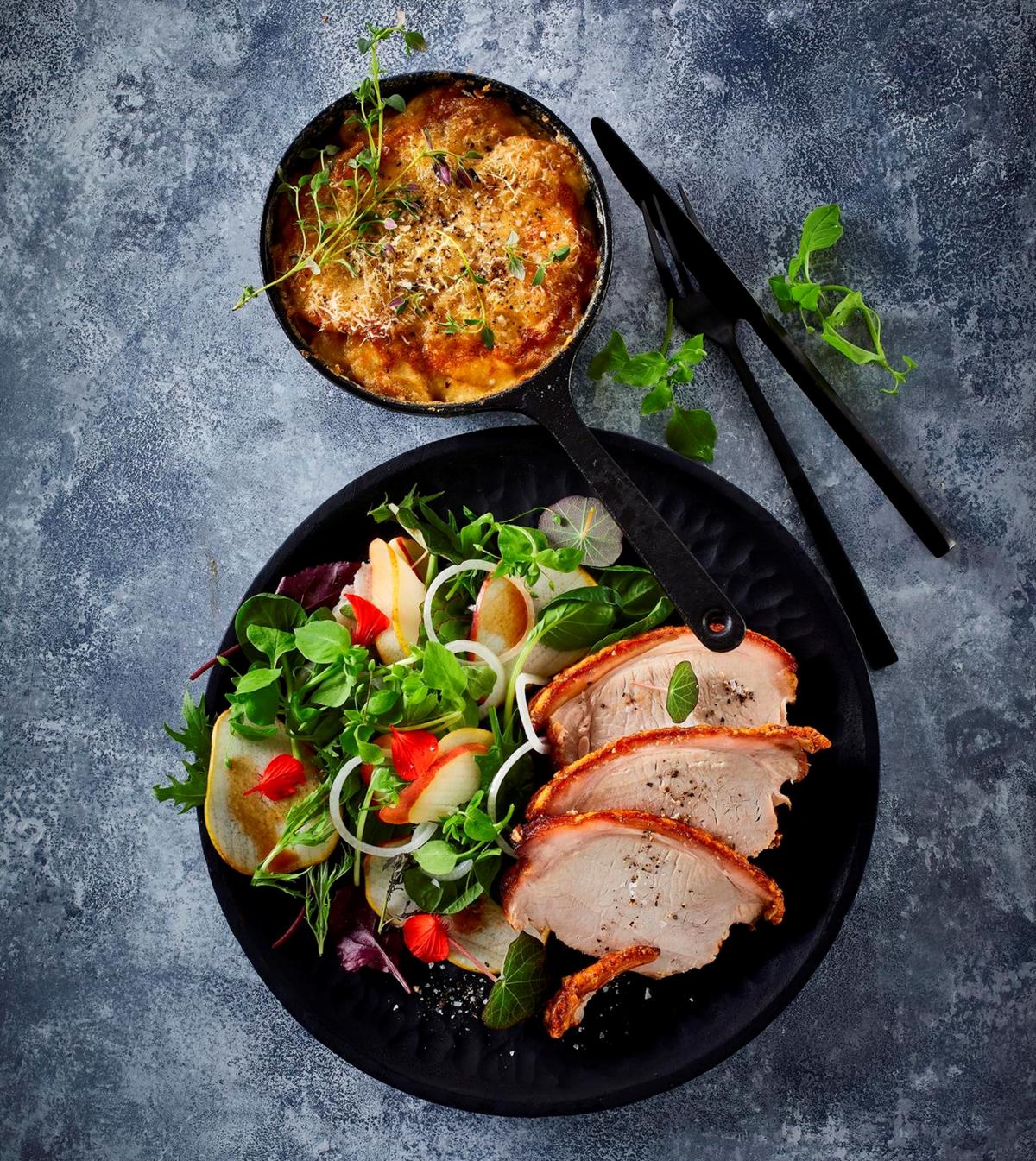 Skinkesteg med quinoasalat og appelsin