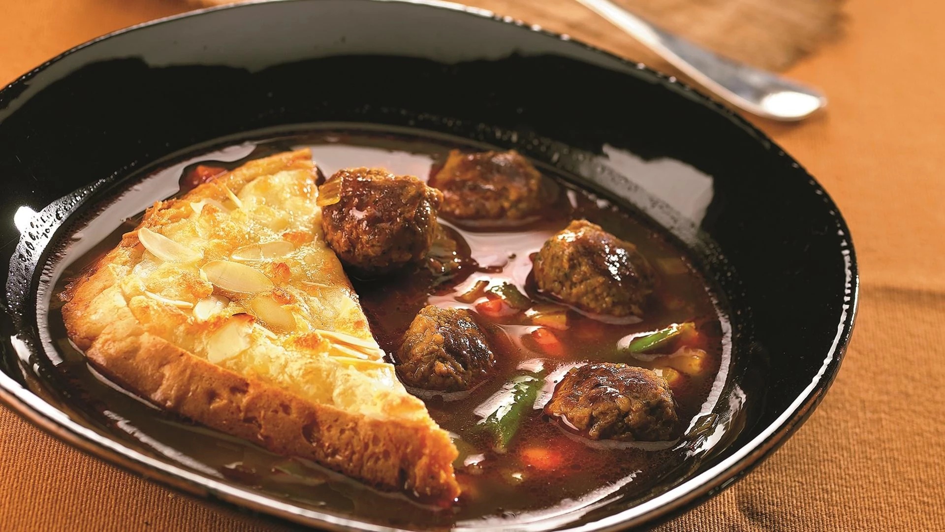 Spansk bondesuppe med ostegratinerede mandelbrød