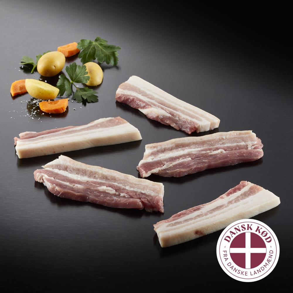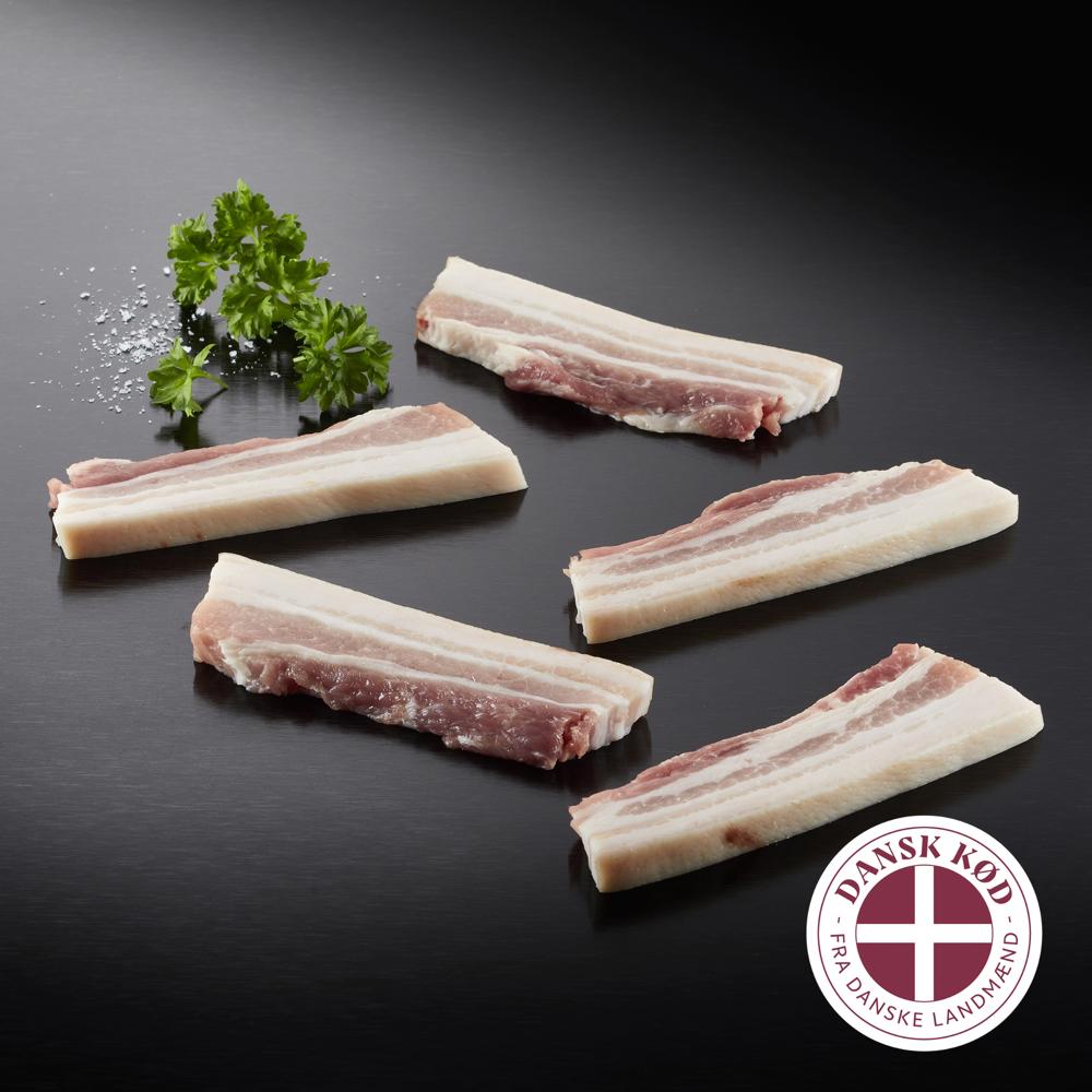 Flæsk i skiver, ca. 12 mm.