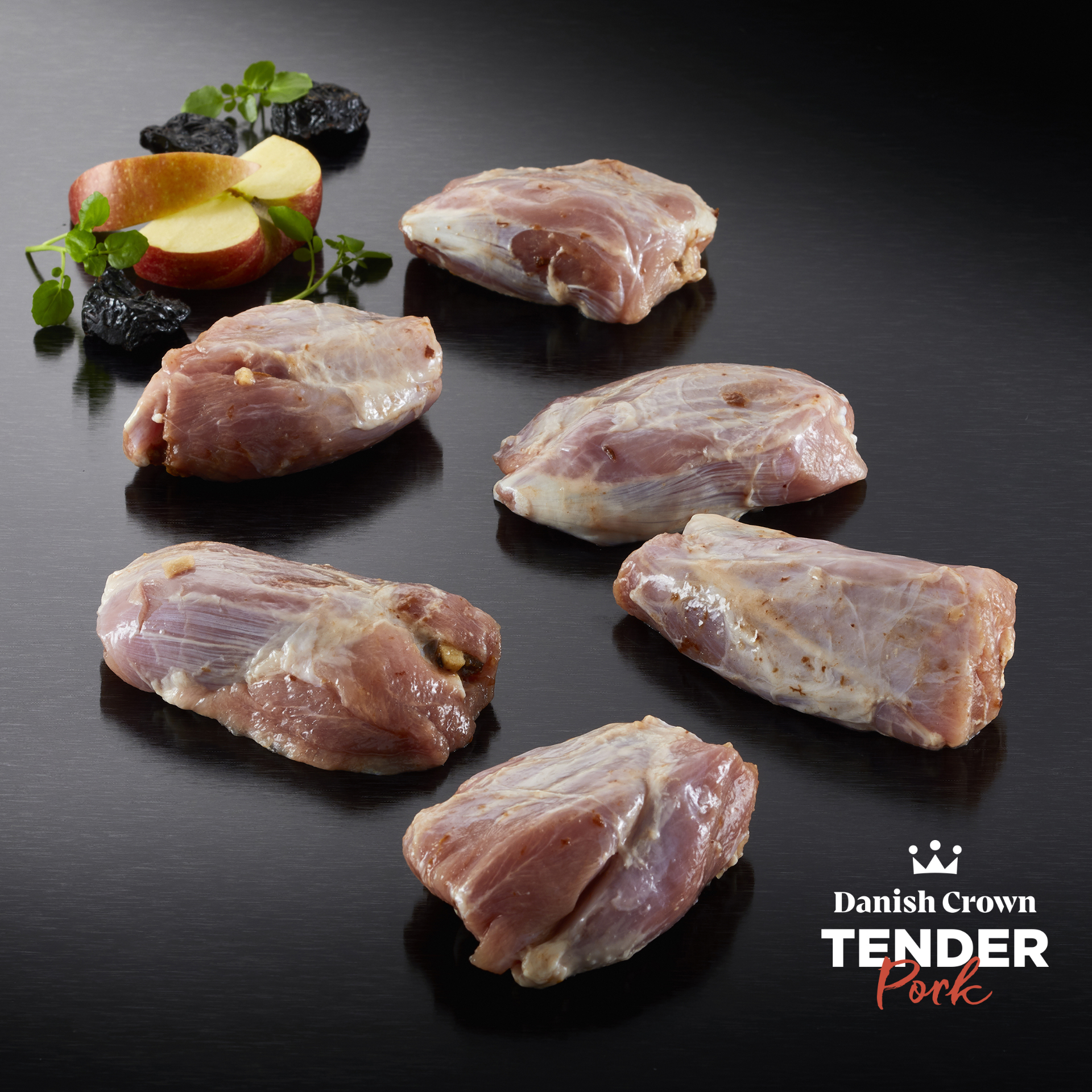 Skankeklumper af gris, tilsat lage, m/æbler & svesker, ca. 100 g