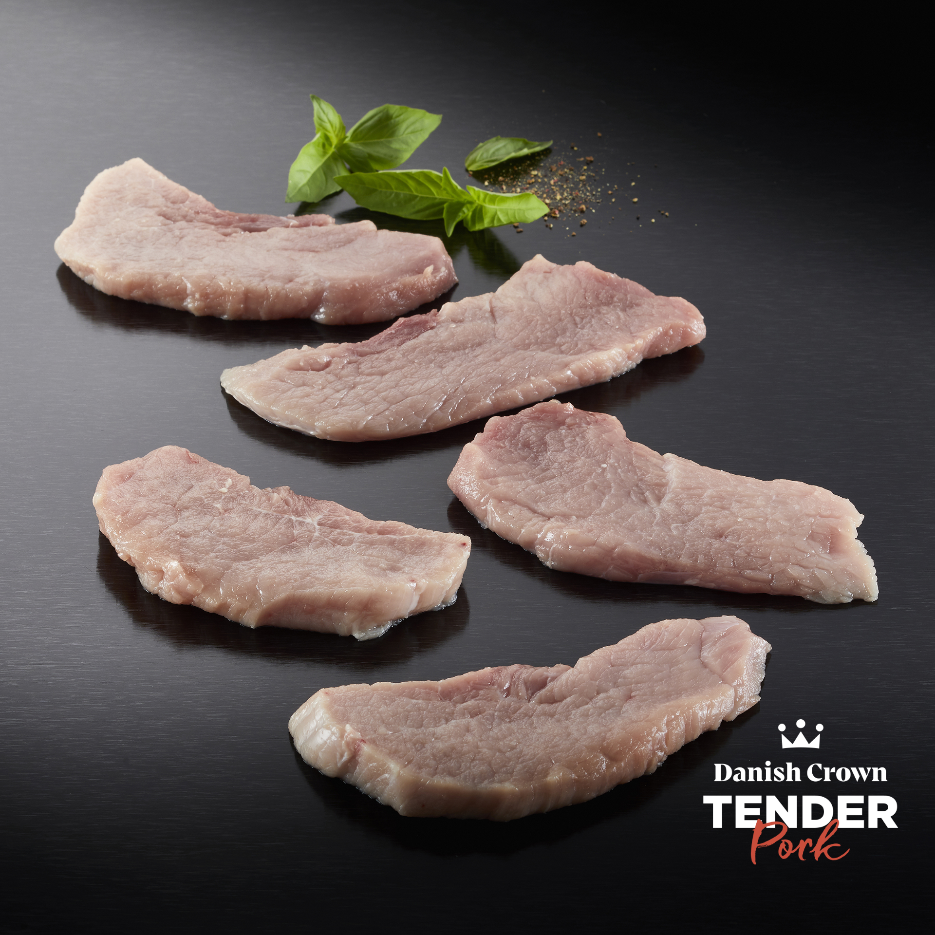 Schnitzel af gris (inderlår) tilsat lage, 25 x 150 g