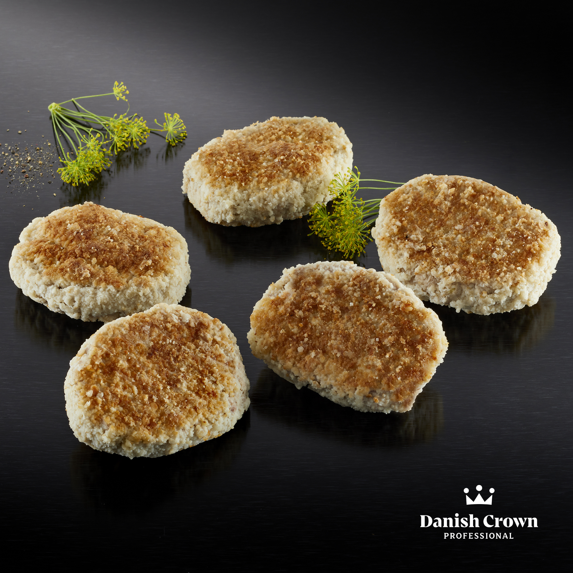 Karbonader af grisekød med højt kødindhold. Panerede og stegte, så de blot skal varmes. Tilsat kartoffel for at give ekstra saftighed.