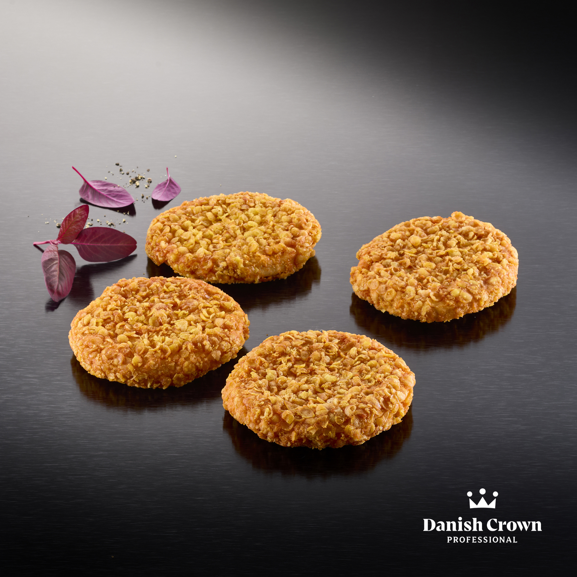 Prøv vores forstegte kyllingeburger af møre stykker kyllingebryst. Den er paneret i sprøde, let krydrede cornflakes, som giver en fantastisk crunch og en perfekt krydret smag. Tilbered nemt på pande, i ovn, airfryer eller friture – altid med et sprødt og saftigt resultat. Perfekt til burgere, sandwiches eller som en del af et lækkert måltid.