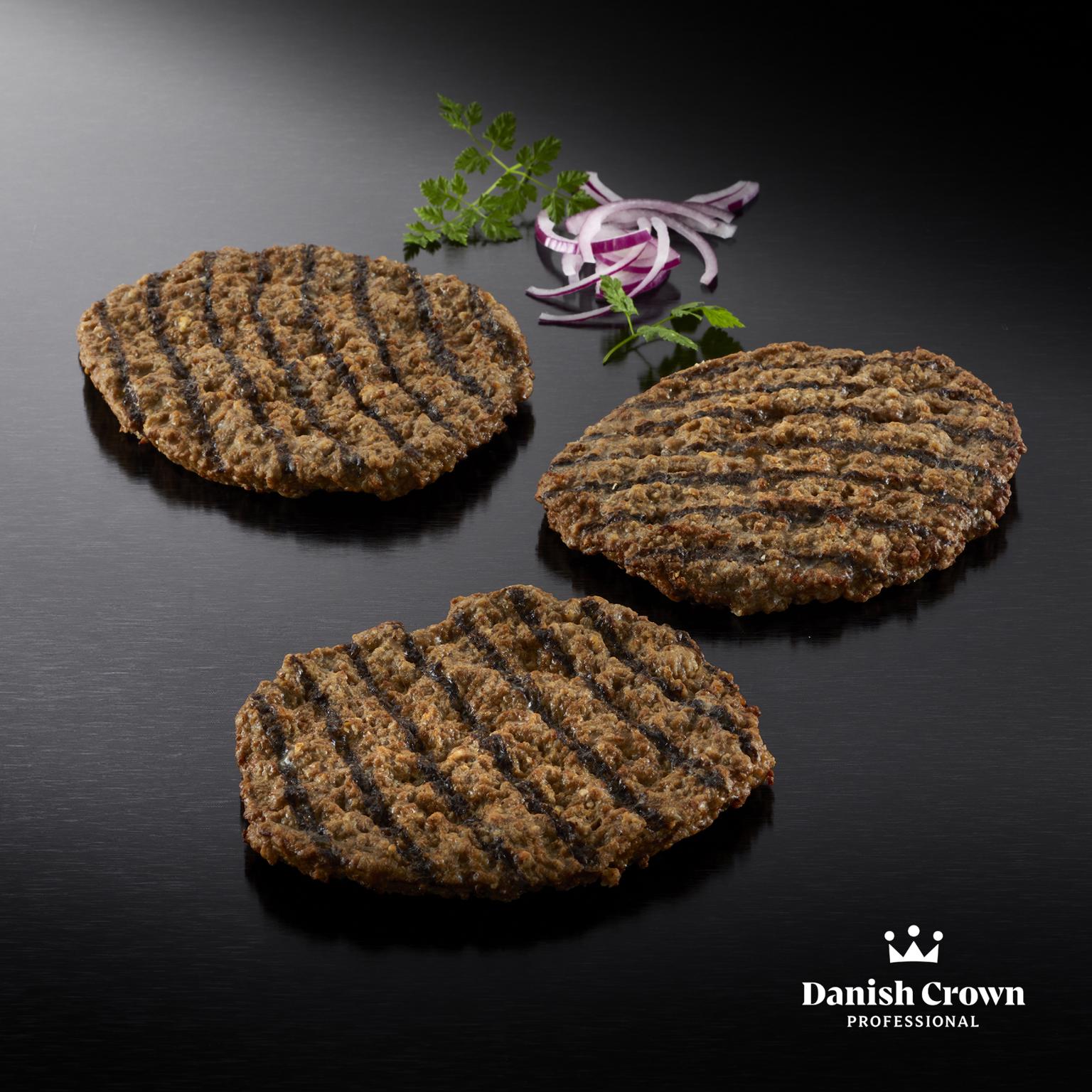 Velsmagende oksebøf (92%) med højt kødindhold, grillstriber og røgsmag. Diameter ca. 128 mm.