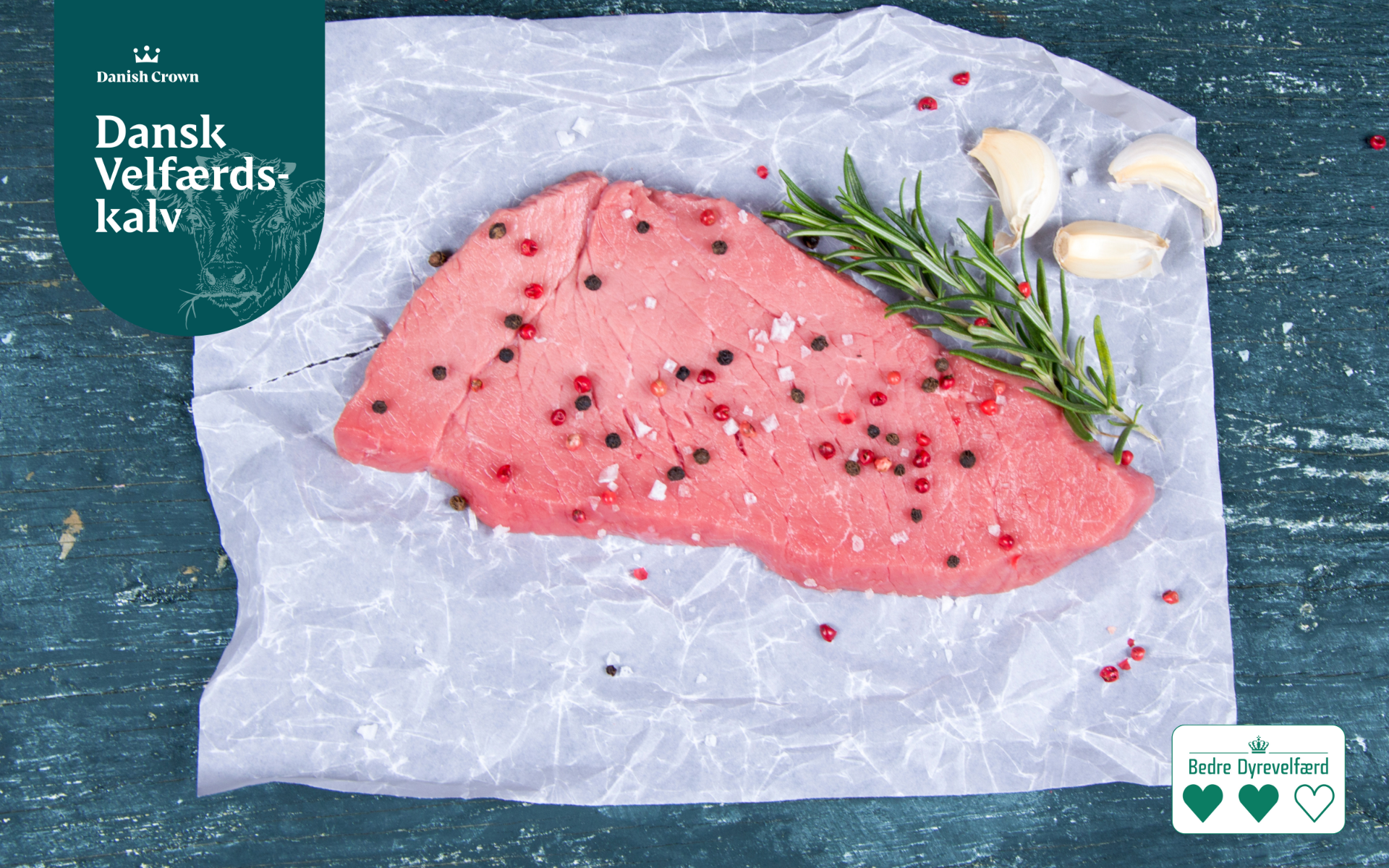 Dansk Kalv med bedre dyrevelfærd konceptet er Danish Crowns kvalitetsprogram for kalveproduktion, som vi har drevet siden 2001. Det er et certificeringsprogram som bygger på både landmandens egenkontrol og ekstern uvildig kontrol. Programmet omfatter krav til 100% dansk opdræt og en god dyrevelfærd gennem hele kalvens liv og fokuserer på håndværk, dedikation, kvalitet og ikke mindst stolthed. Dansk velfærdskalv har 2 hjerter i statens Dyrevelfærdsmærkning