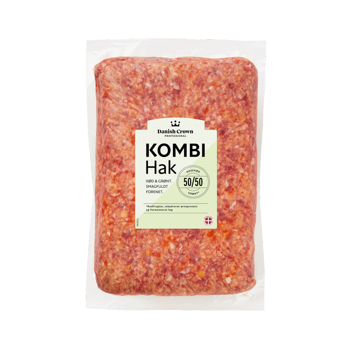 KOMBI Burger er lavet af hakket oksekød med grøntsager, rehydreret ærteprotein og fermenteret løg i en blanding med 50% oksekød. Det er dermed nemt at spare halvdelen af kødet! KOMBI Hak har en konsistens og smag, der ligner en burger af hakket oksekød, til trods for at kødmængden er halveret.