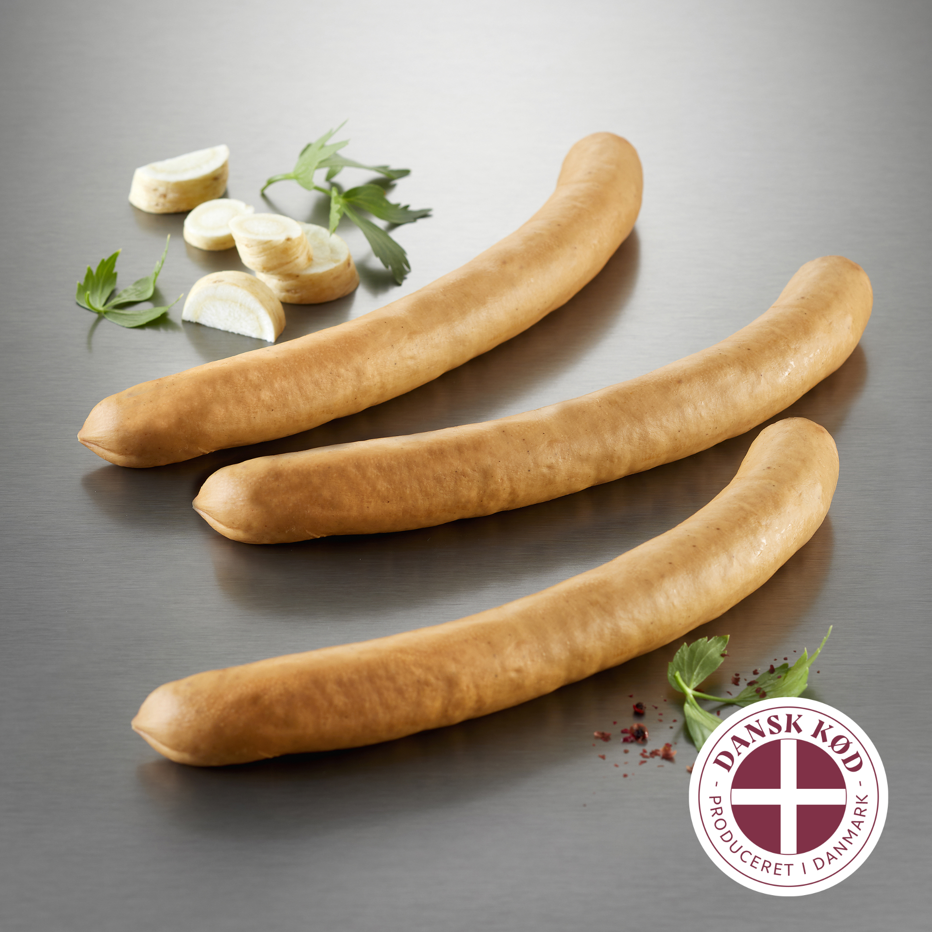 Ingredienser: Grisekød (70%), vand, grisefedt, kartoffelstivelse, SOJAPROTEIN, salt, stabilisator (E 451), løgpulver, svær, druesukker, krydderier, sukker, krydderiekstrakter, antioxidant (E 301), konserveringsmiddel (E 250), grisetarm.