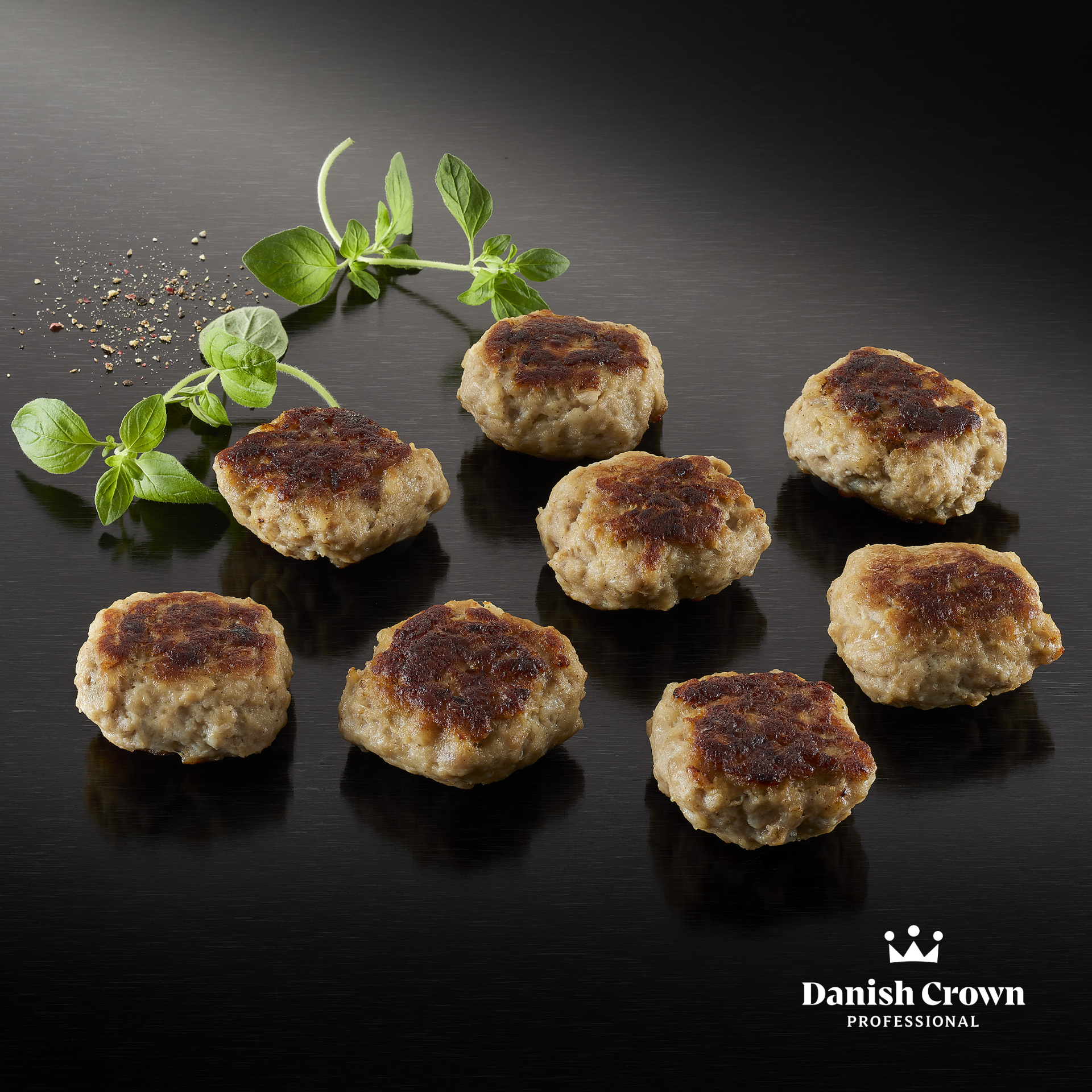 Pandestegte frikadeller er til mere end brun sauce og kold kartoffelsalat. Velegnet til salat-, grøntsags-, pasta- og brødkombinationer af enhver art på tallerken eller buffet.