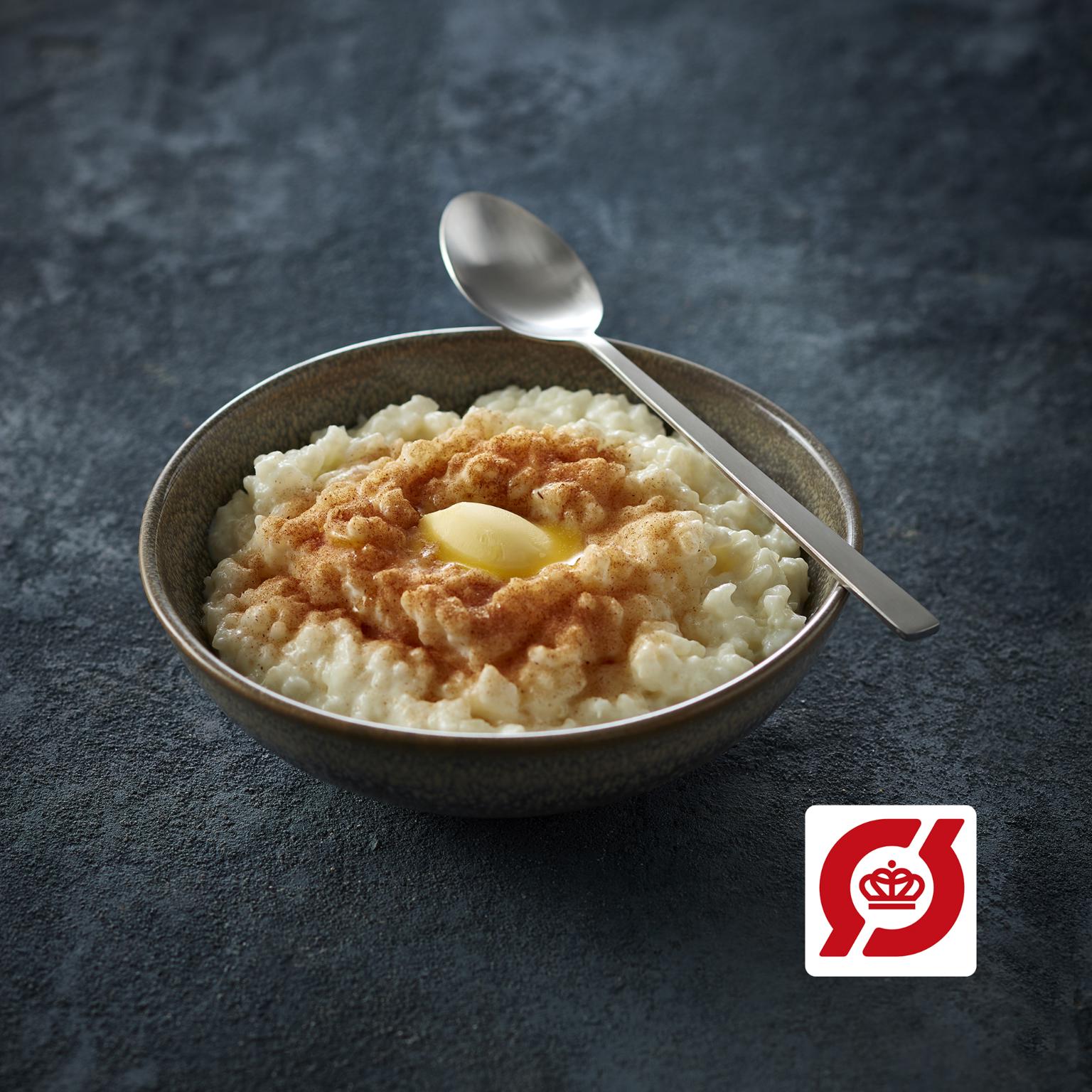 Klassisk risengrød kogt på rene råvarer uden e-numre. Er udelukkende lavet på dansk mælk, vand, grødris og salt. Helt som du selv ville lave den.