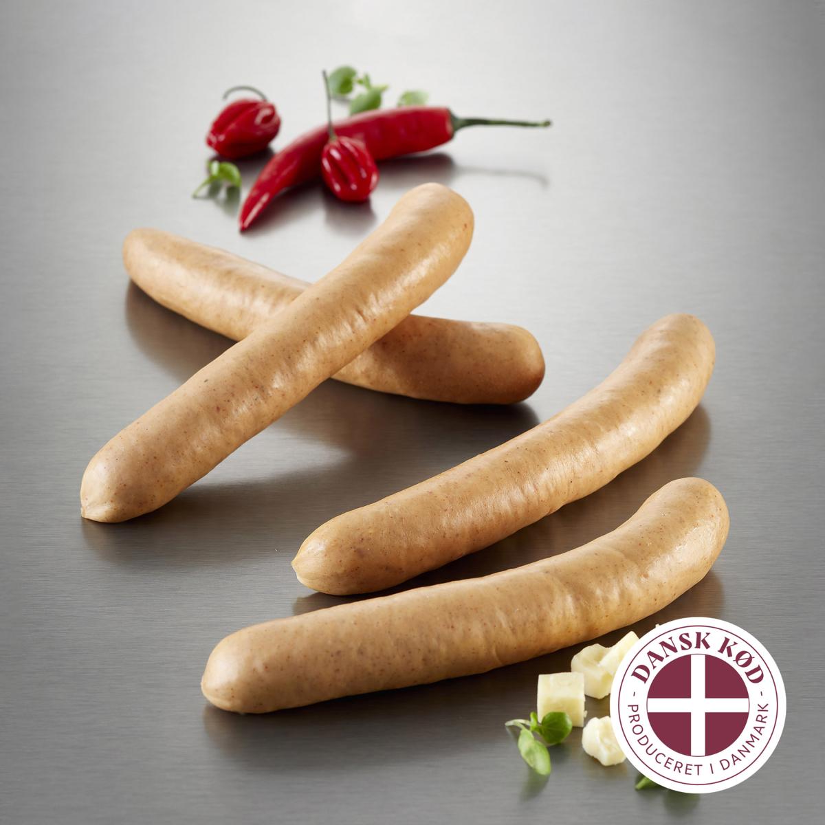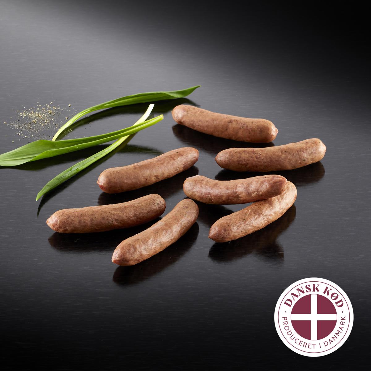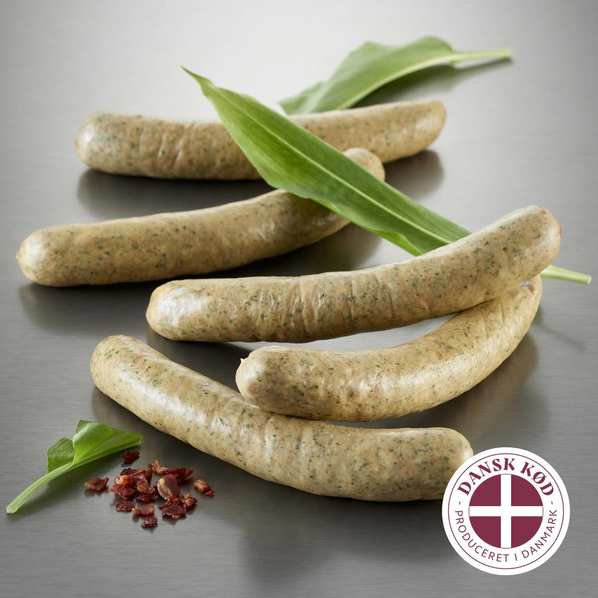 Ingredienser: Grisekød (76%), vand, SOJAPROTEIN, kartoffelstivelse, tørret løg, salt, krydderier, stabilisator (E 451), druesukker, aroma, hydrolyseret SOJAPROTEIN, krydderiekstrakter, antioxidant (E 301), grisetarm.