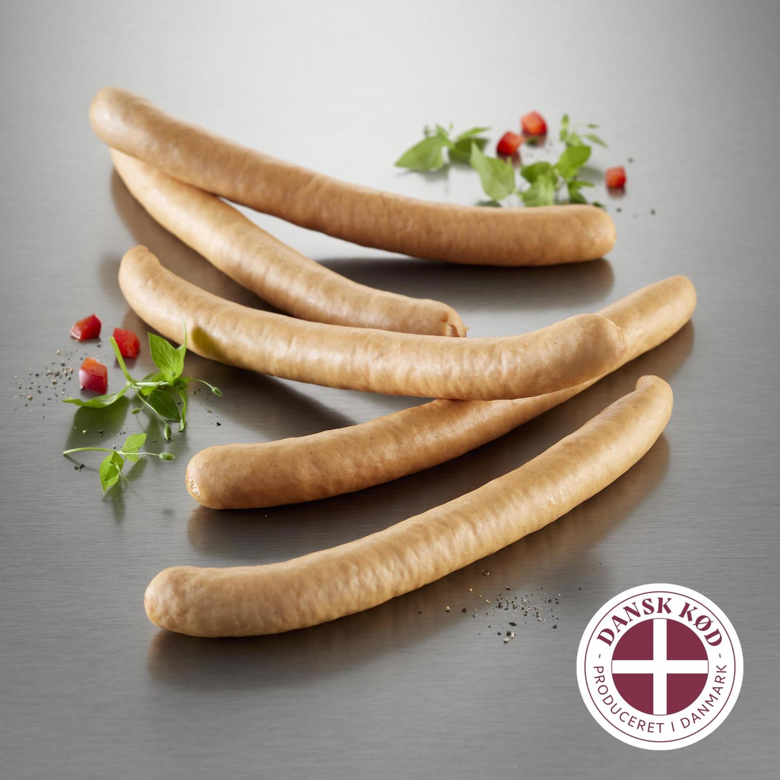 Ingredienser: Grisekød (76%), vand, kartoffelstivelse, salt, SOJAPROTEIN, krydderiekstrakter, stabilisator (E 451), spæk, krydderier, druesukker, hydrolyseret majsprotein, løgpulver, antioxidant (E 301), konserveringsmiddel (E 250), lammetarm. Kogt og røget