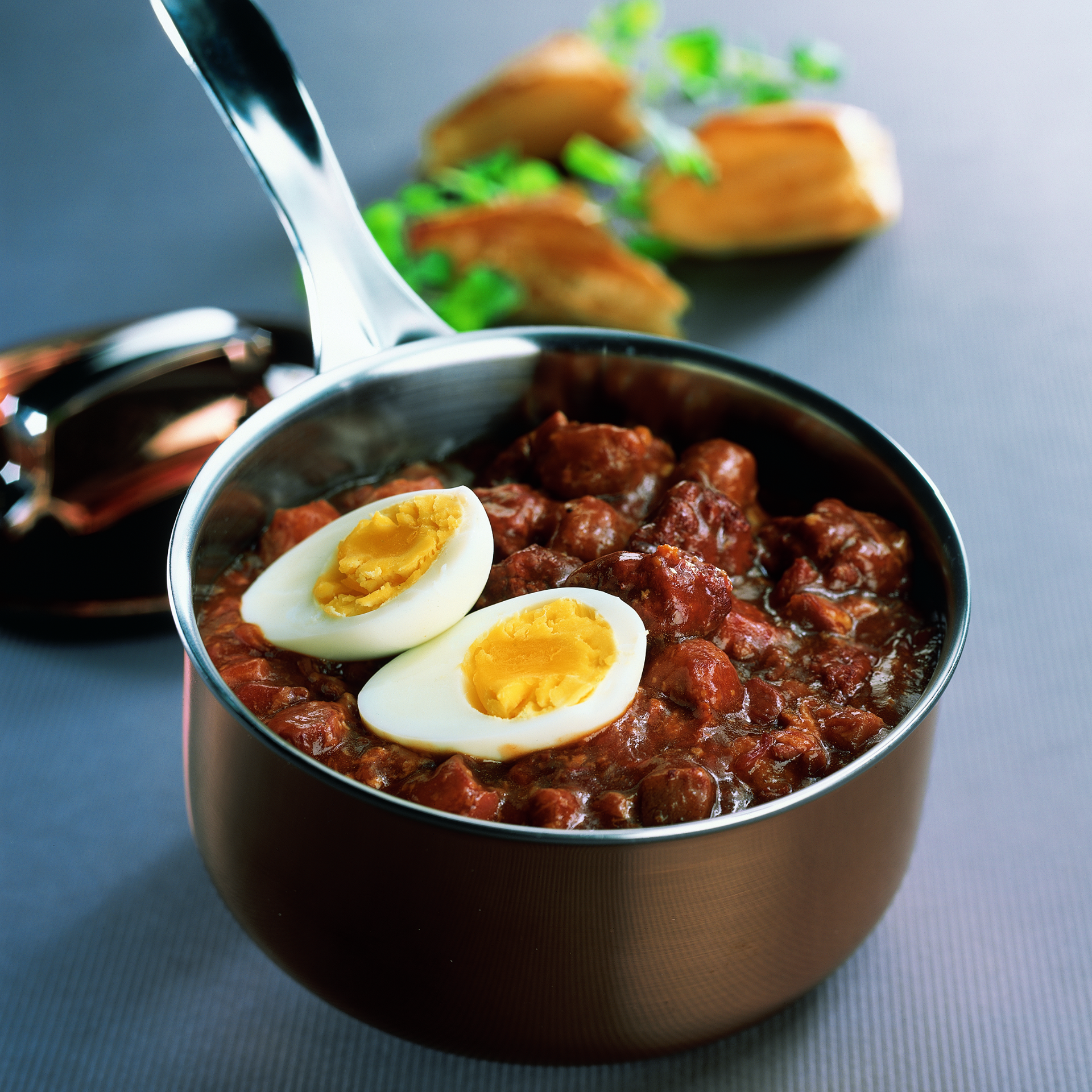 Ingredienser: Vand, stegte løg (6%) (løg, palmeolie, HVEDEMEL, salt) majsstivelse, PISKEFLØDE (2%), gærekstrakt, HVEDEMEL, palme- og rapsolie, oksefedt, tomatpuré, sukker, salt, grøntsager, glukosesirup, farve (E150c), krydderier, kødekstrakt, grøntsags- og krydderiekstrakt (indeholder SELLERI).