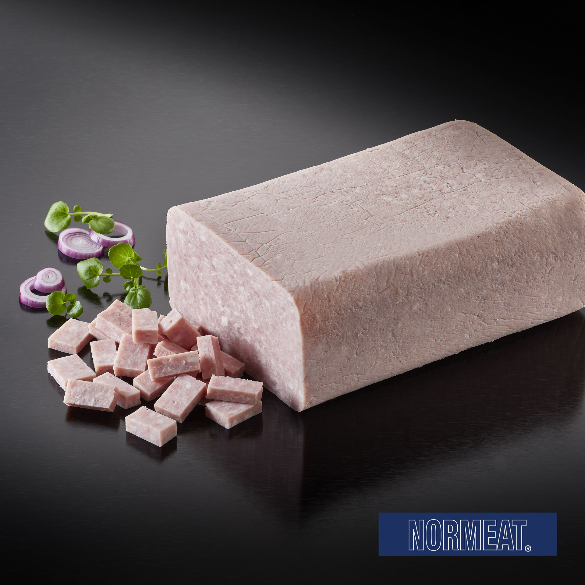 Pizzablok sammensat af finhakket skinkekød. Velegnet til topping på pizza.