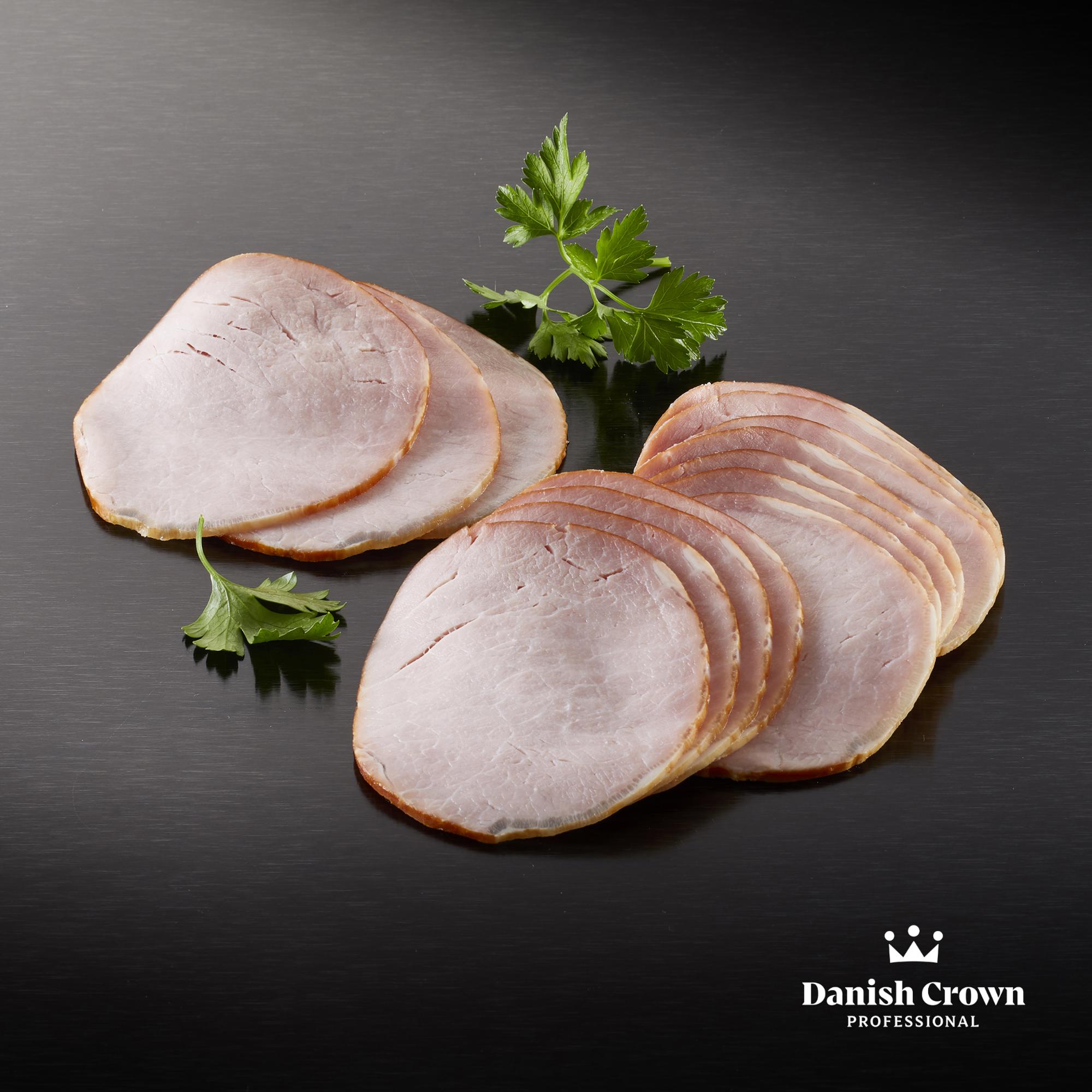 Hamburgerryg pålæg, tilsat vand. Kogt og røget.