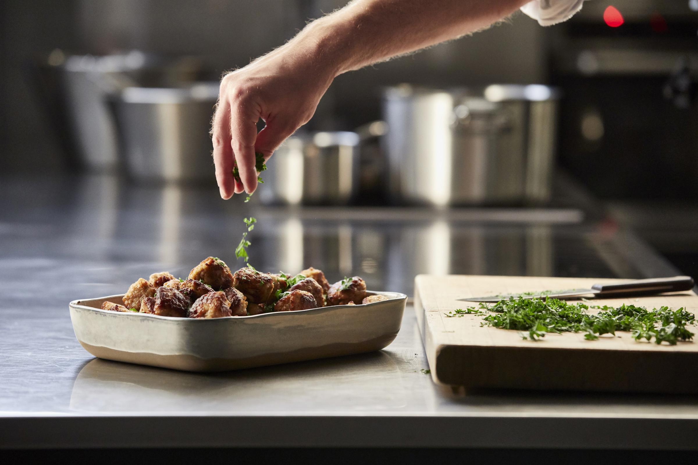 Frikadellen in vielen Größen und Geschmacksrichtungen. Von kleinen Snacks mit 12 Gramm bis zum soliden Leckerbissen mit 200 Gramm. Ganz wie Ihre Gäste es wünschen, wählen Sie aus Rinder-, Puten oder Schweinefleisch. Ihr Vorteil in der Küchenpraxis: Unsere tiefgefrorenen Frikadellen lassen sich einzeln entnehmen und schnell und problemlos zubereiten. Das ermöglicht Ihnen die volle Portionskontrolle für Ihre Menüs und das Buffet.
