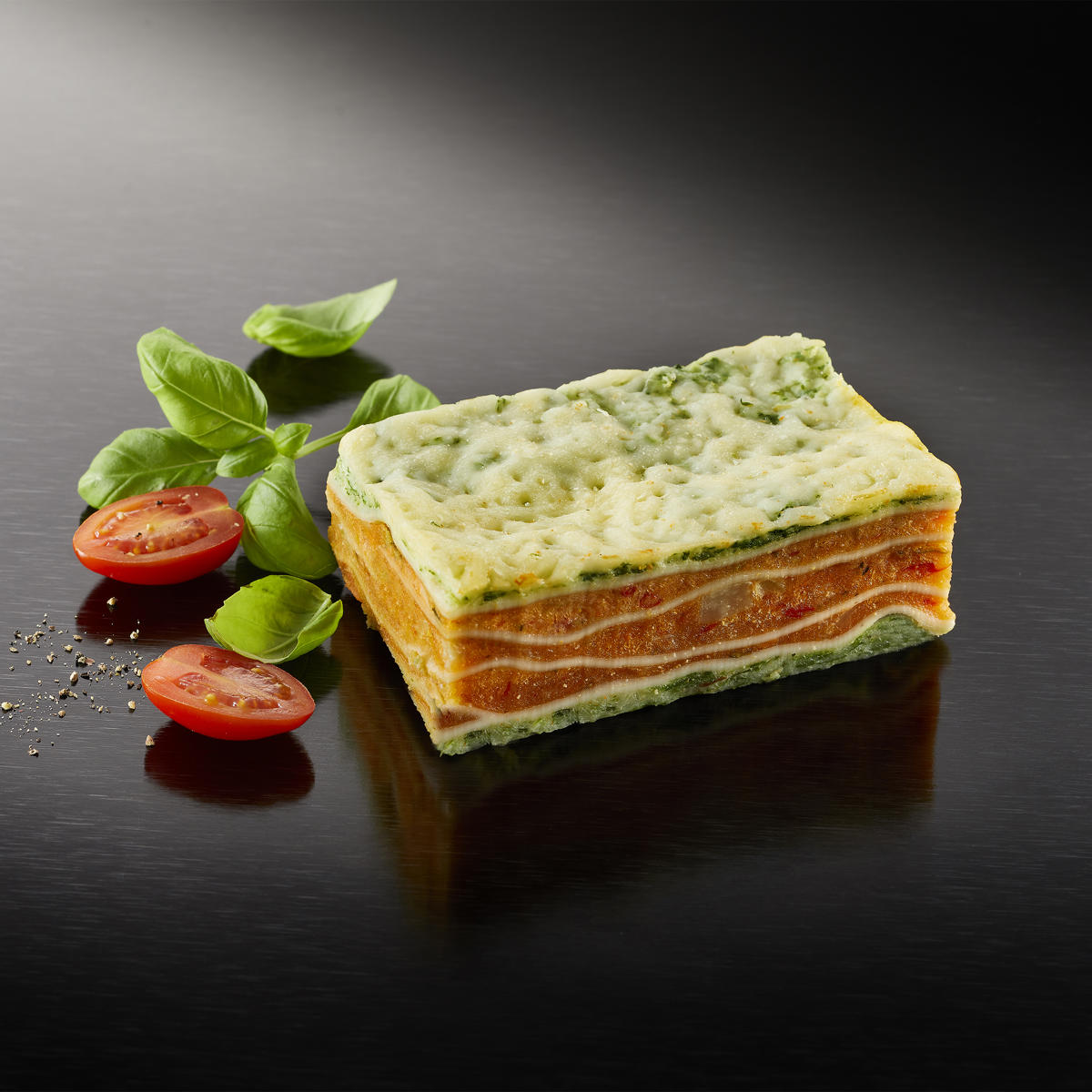 Konvektomat: Vorheizen auf 170 °C. Tiefgefrorenen Auflauf ca. 30 Min., angetauten Auflauf ca. 20 Min. garen. Um ein optimales Ergebnis zu erzielen, Auflauf ca. 5–10 Min. ruhen lassen.
