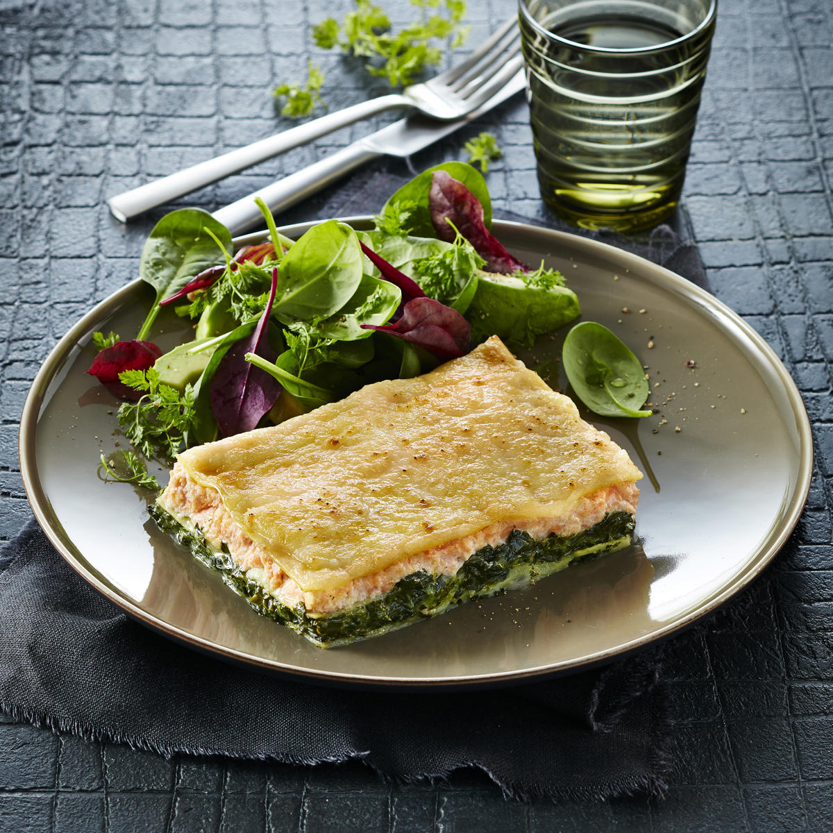 30 x 310 gVegetarischer Spinat-Auflauf mit Kartoffelscheiben und einer Béchamelsauce verfeinert, portionsweise entnehmbar, tiefgefroren.