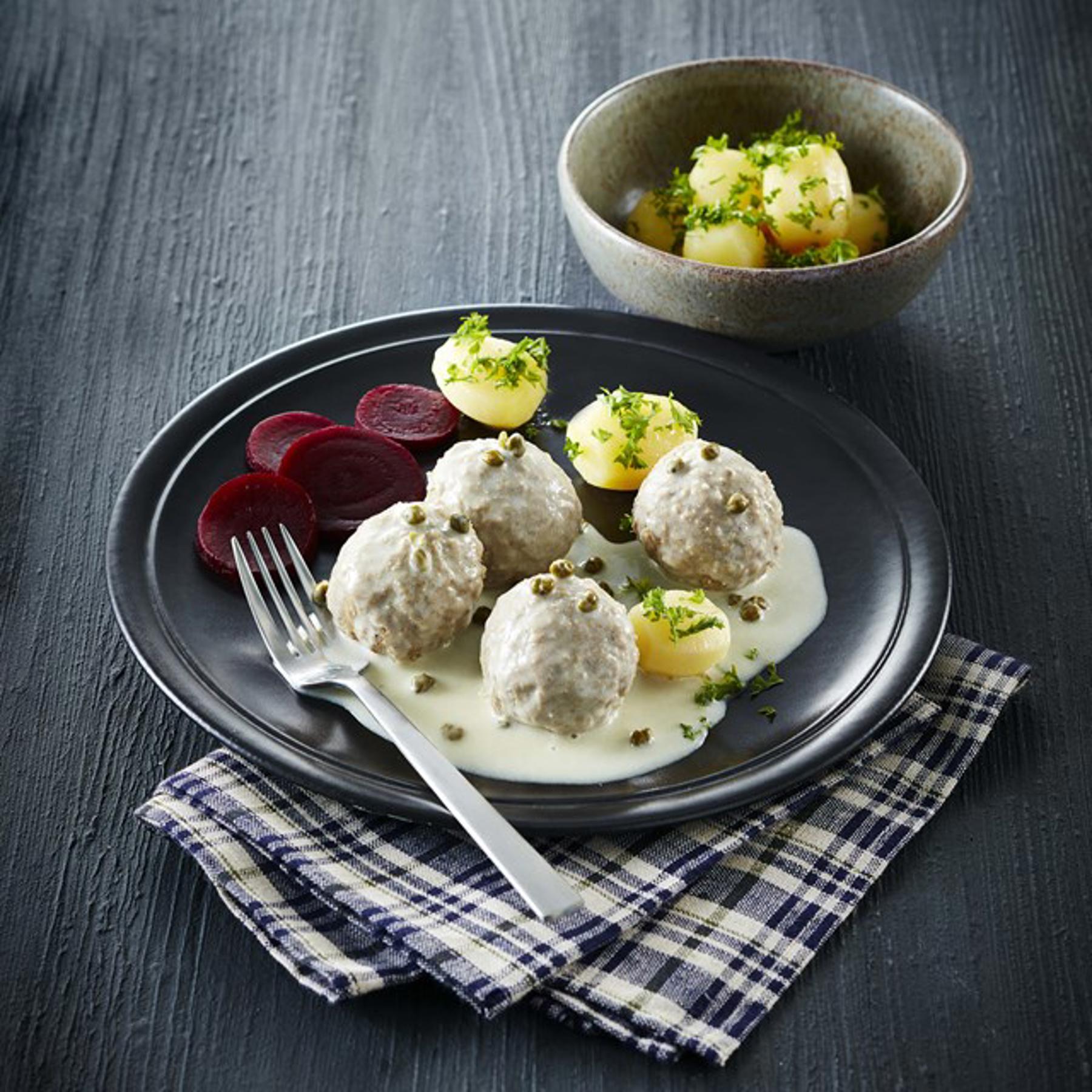Die gefrorenen Klopse im heißen Fond 10–15 Min. ziehen lassen – nicht kochen. Convektomat/Combidämpfer: Gefrorene Klopse bei ca. 90 °C Dampf für etwa 25 Min. erwärmen.
