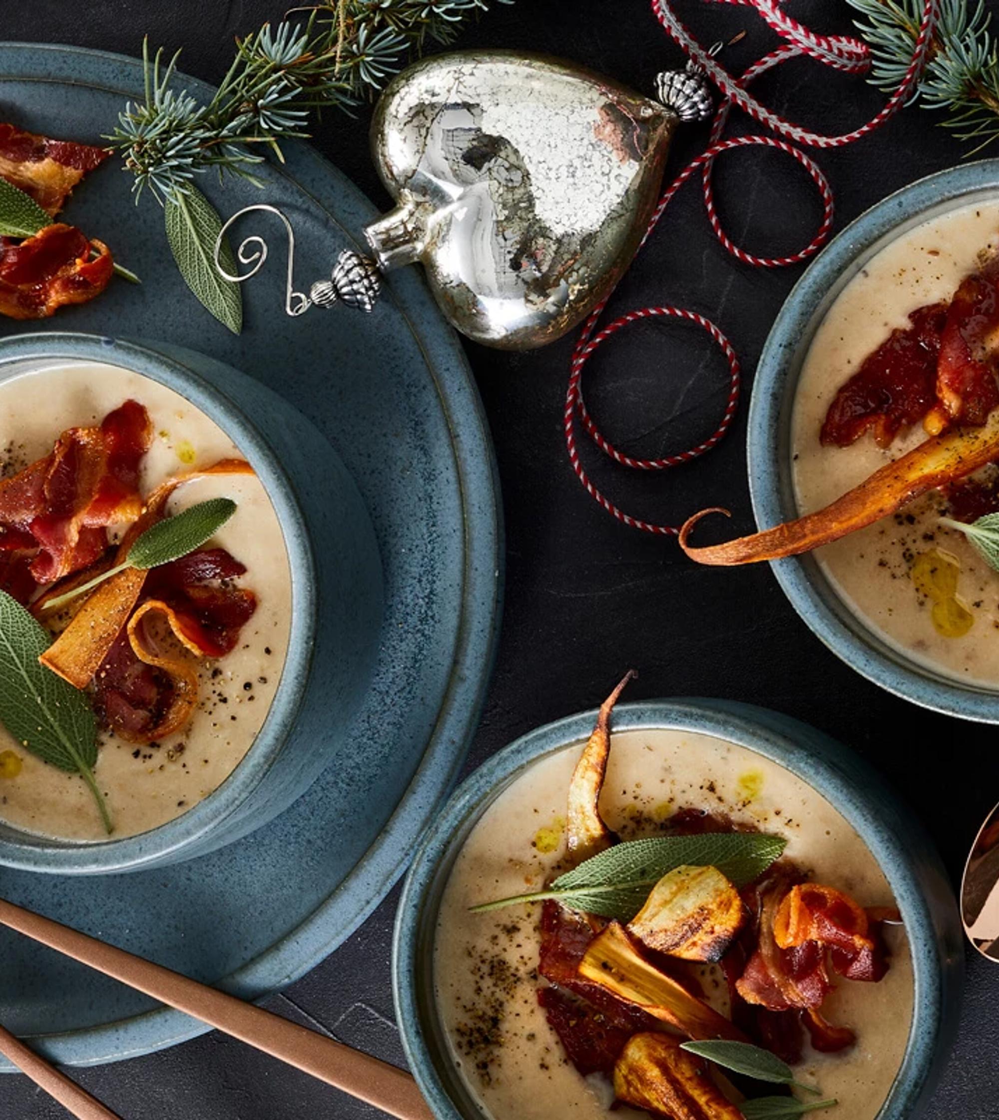 Party-Frikadellen mit gebackenem Sellerie und gegrilltem Grünkohl