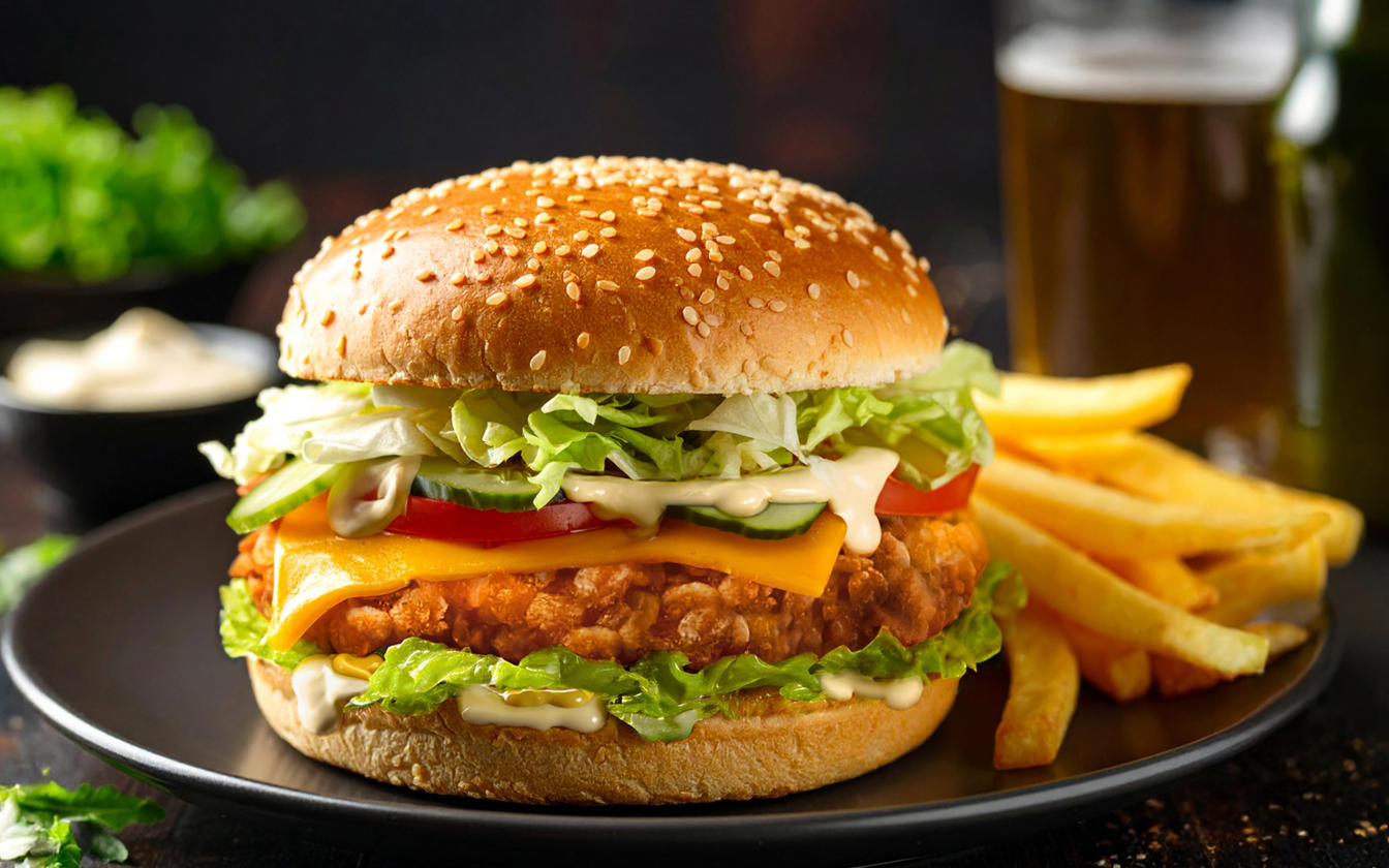 Dieser saftige Crispy Chicken Burger überzeugt mit einem goldbraun-knusprigen Hähnchen-Patty, cremigem Mayo-Senf-Dip und frischem Salatgemüse im getoasteten Bun. Ob als schnelles Mittagsgericht, beliebter Foodtruck-Klassiker oder Highlight auf dem Imbiss-Menü – dieser Burger ist ein echter Publikumsliebling. Einfach zuzubereiten und perfekt zu kombinieren mit Fries oder einem knackigen Beilagensalat.