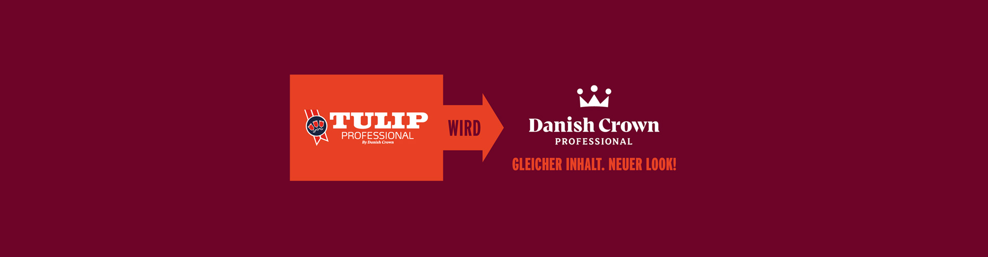 Die Umstellung von TULIP Professional auf Danish Crown Professional ist eine globale Initiative von Danish Crown. Als nachhaltig ausgerichtetes Unternehmen wollen wir unsere Vision – Gemeinsam schaffen wir eine nachhaltigere Zukunft für Lebensmittel! – international stärken. Das geht auch mit einer Vereinheitlichung des Foodservice Markenauftritts einher.