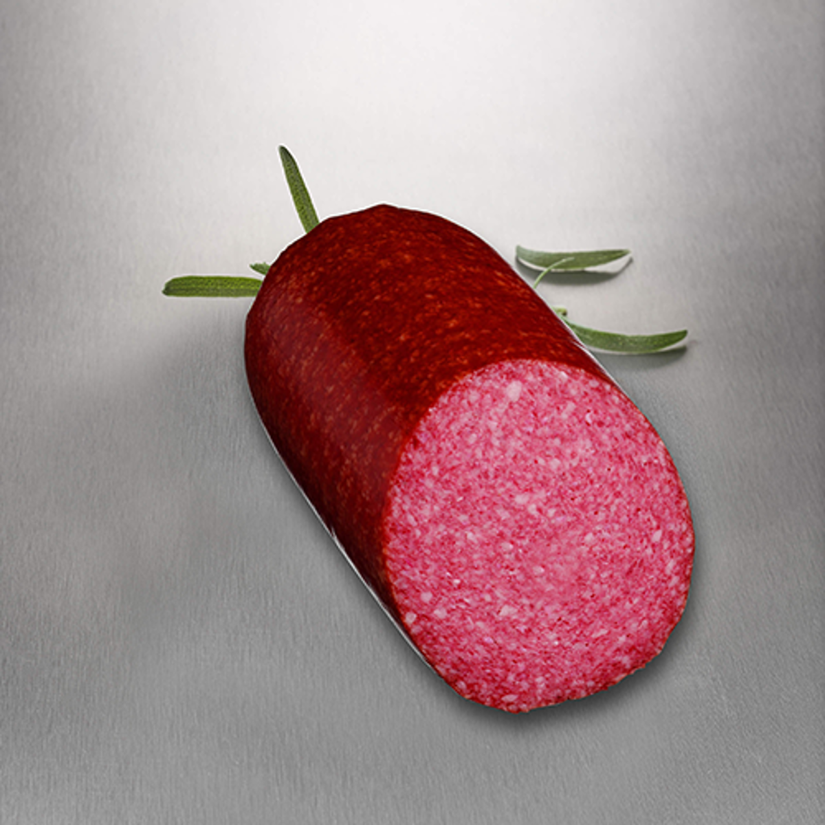 Ingrédients : Viande de porc (84%), gras de porc, sel, amidon (pomme de terre), épices, dextrose, sirop de glucose, poudre d’ail, antioxydant (E301), ferments, conservateur (E250), colorant (E120).