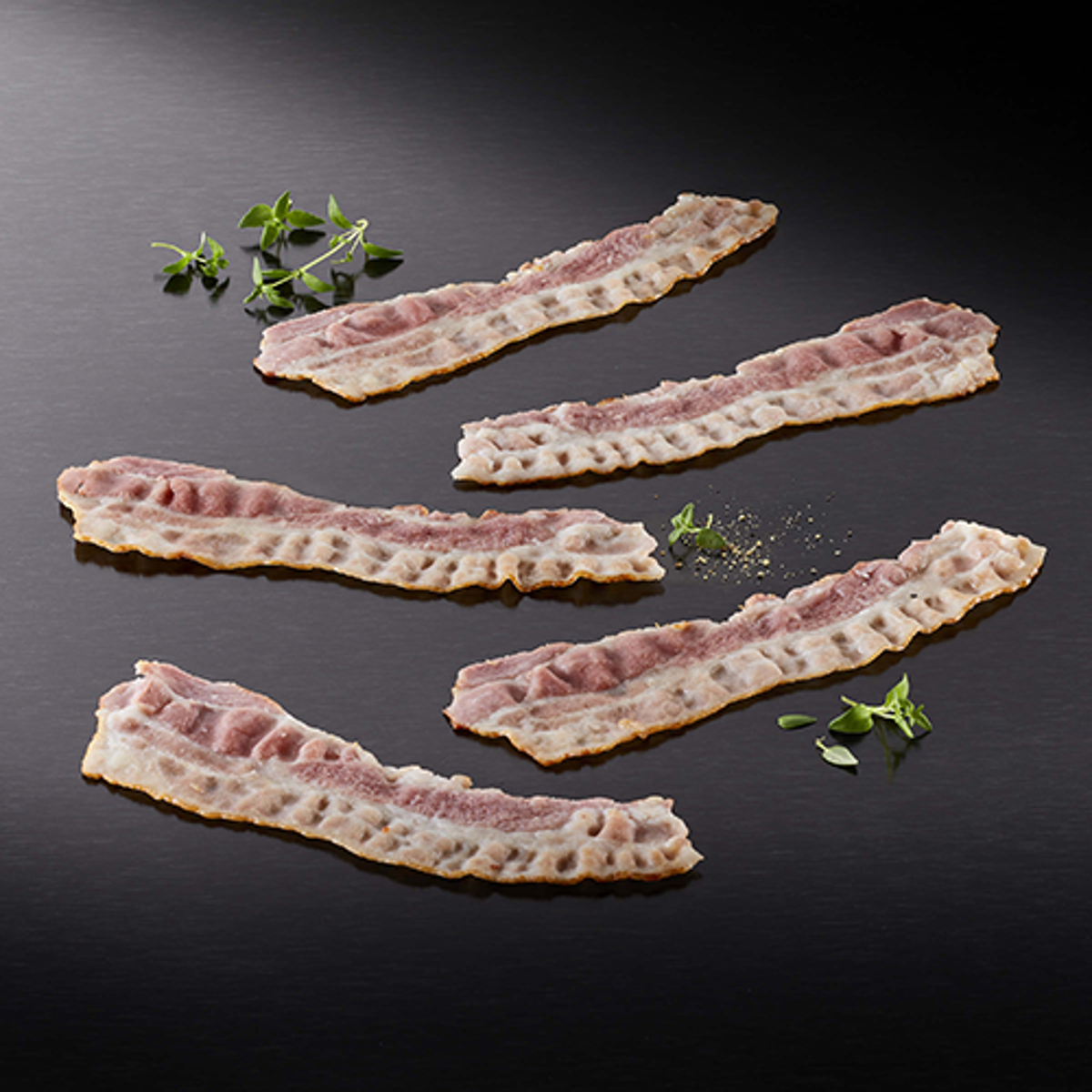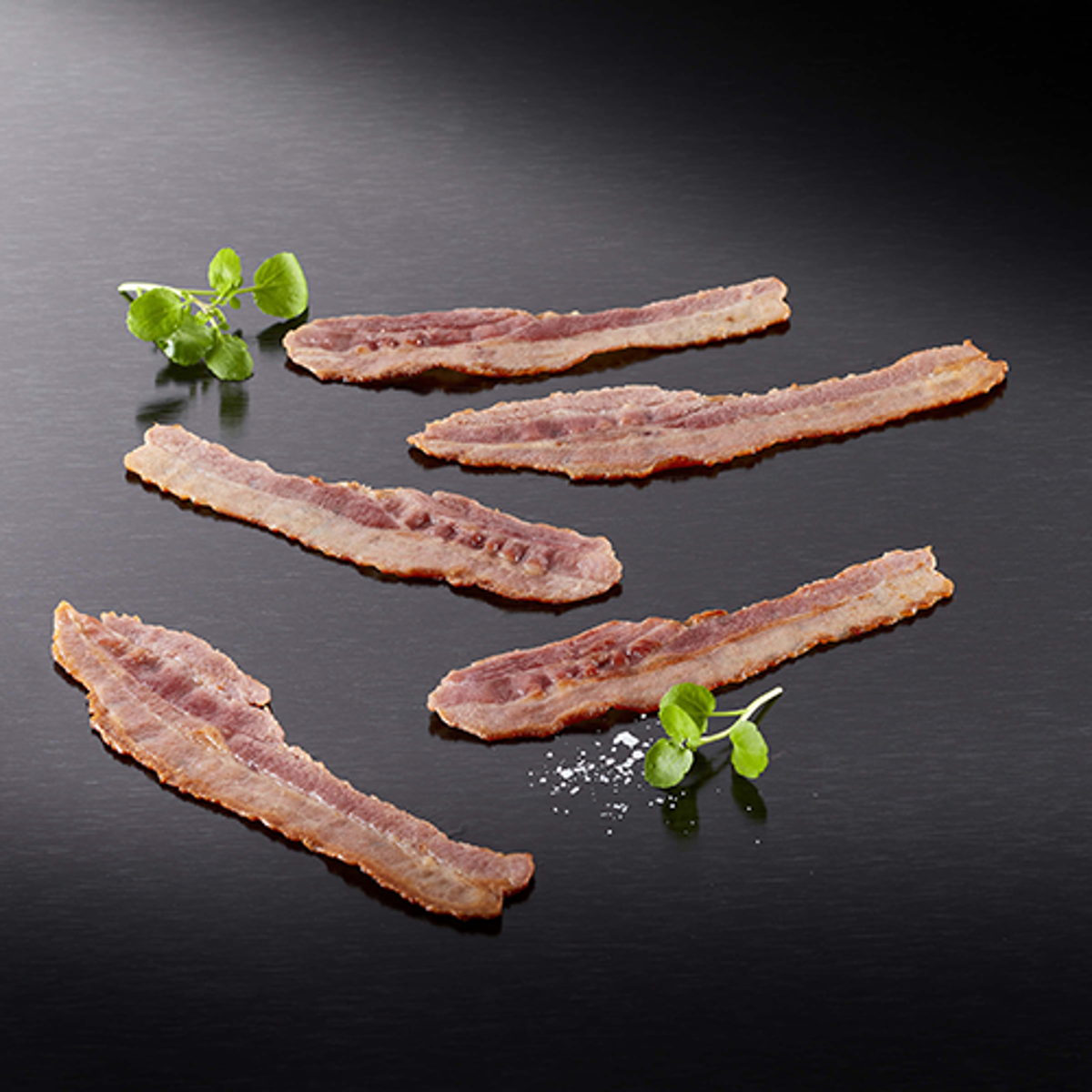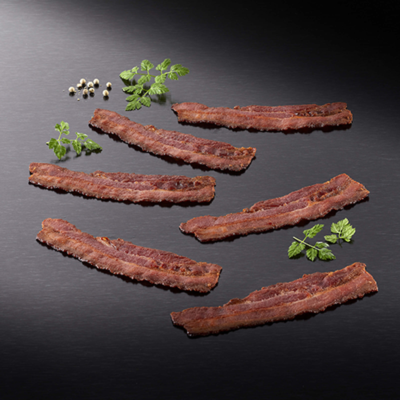 Ingrédients : Viande de porc, sel, arôme naturel, vinaigre, antioxydant (E301), conservateur (E250). Pour 100 g de Bacon cuit, 286 g de viande de porc sont utilisés.